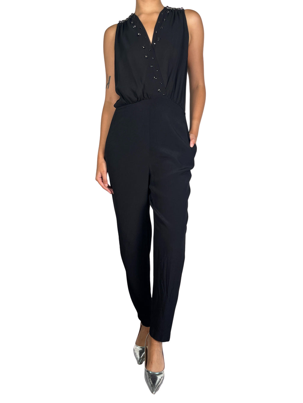 No especifica talla. Incluye zipper original de la marca. Altura de modelo 1,68