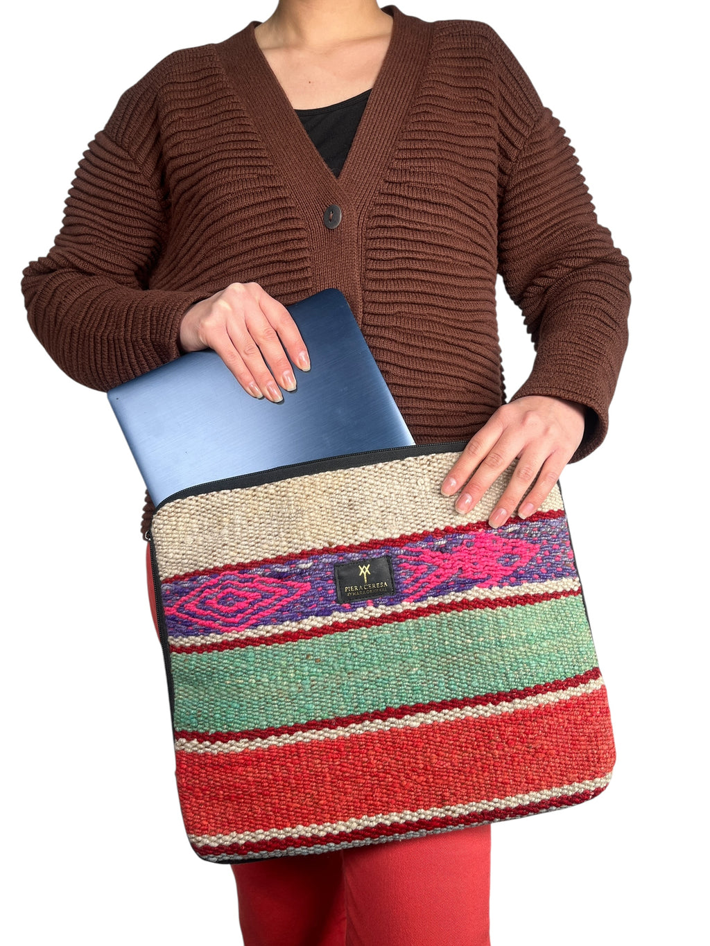 Funda de computador, tejida a mano 100% lana, acolchada y forrada. Medidas 28 x 33 cm. Las compras efectuadas en accesorios no tienen derecho a cambios ni devoluciones.