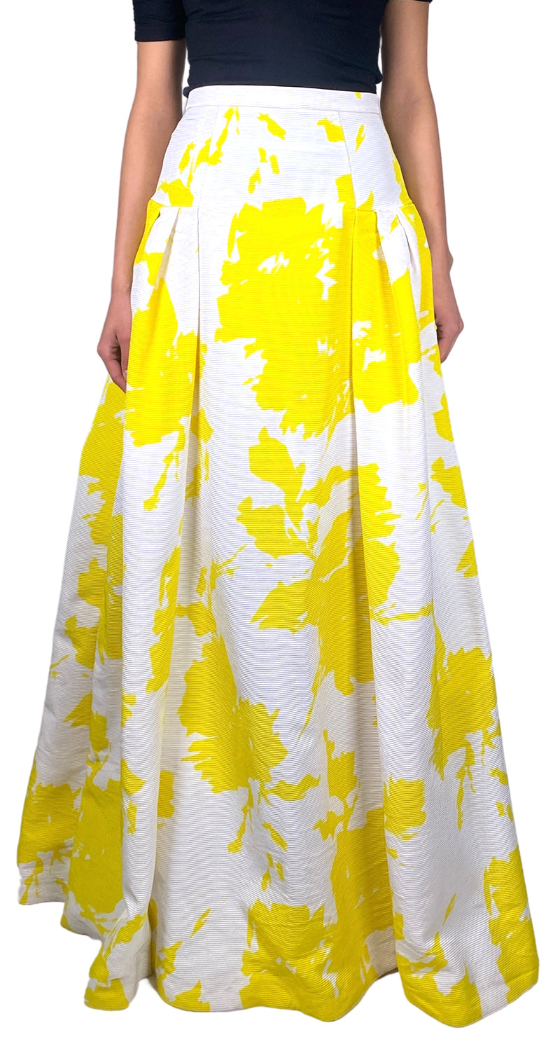 Presenta moderados signos de uso en ruedo. Talla 10 de la marca. Altura modelo 1.68.