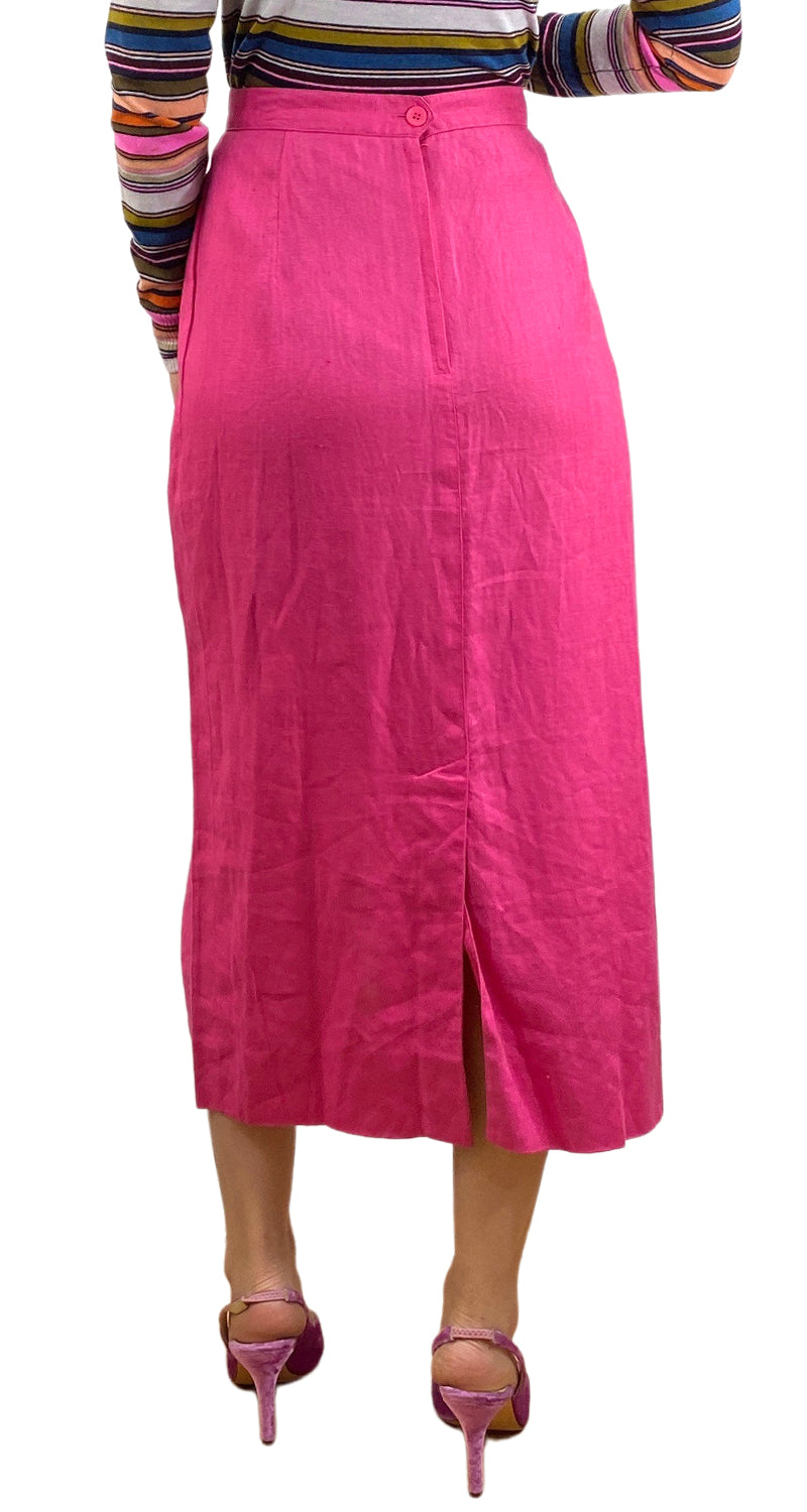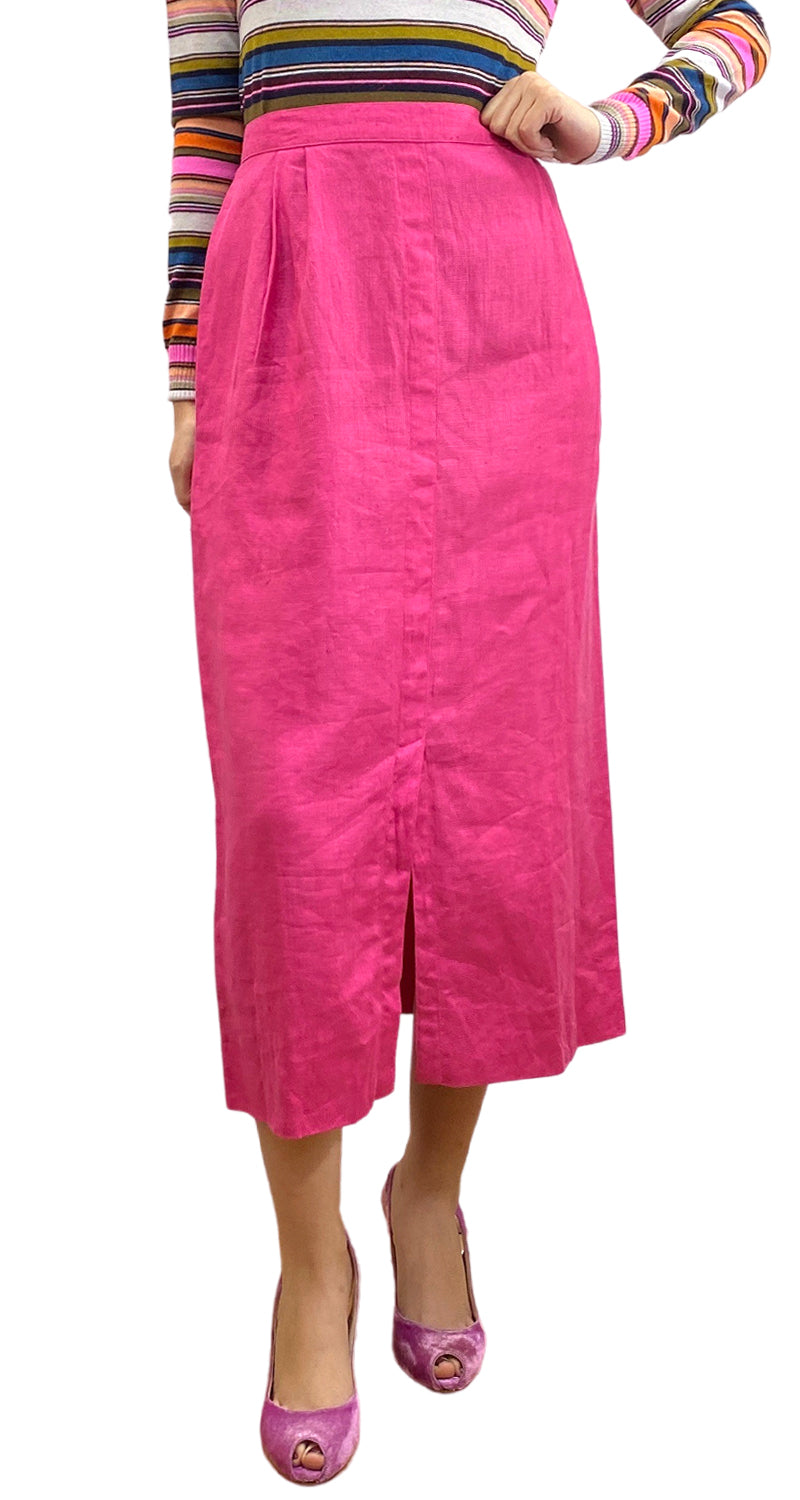 Falda de lino color Rosada. Talla 14 US. Altura modelo 1.68.
