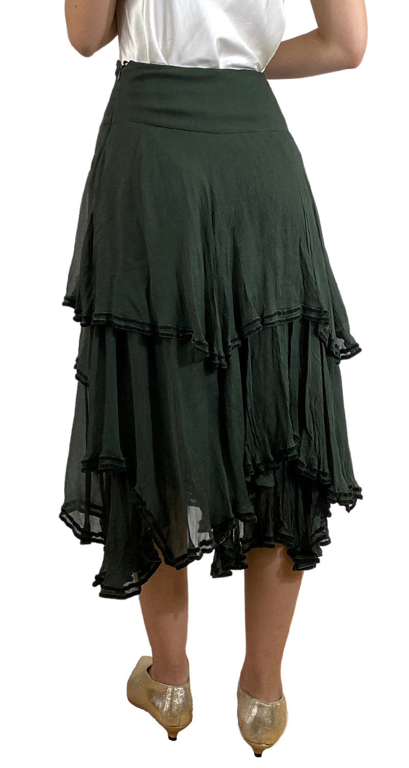 Falda midi Verde de seda con diseño de capas. Talla 4 de la marca.