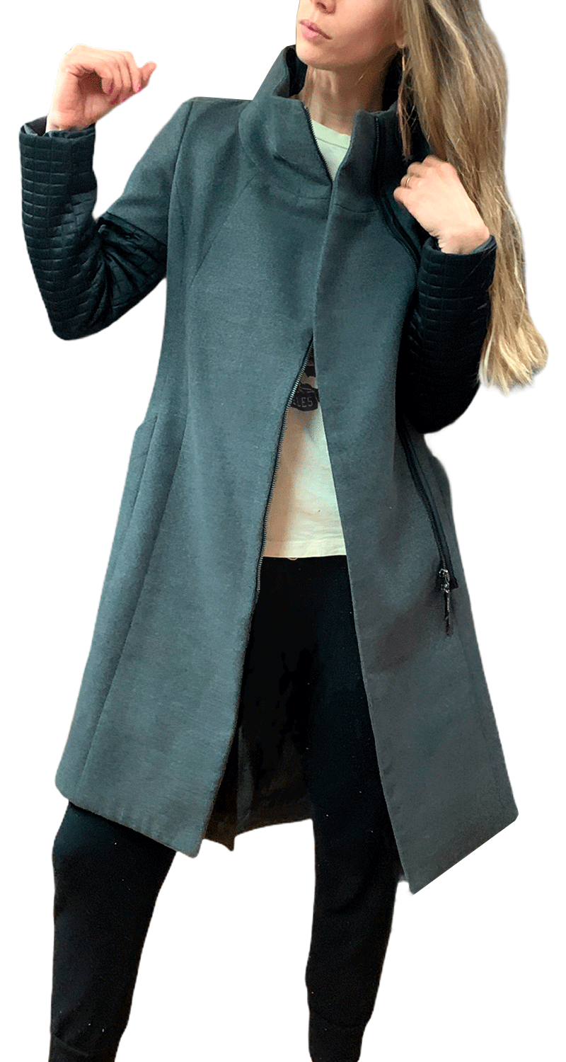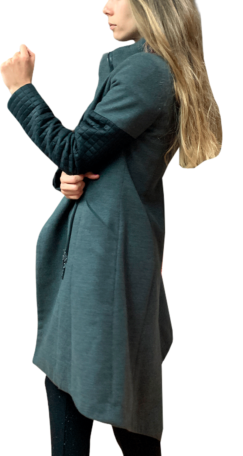 Chaqueta oversize color Gris con cuellos alto y mangas quilt en Negro.