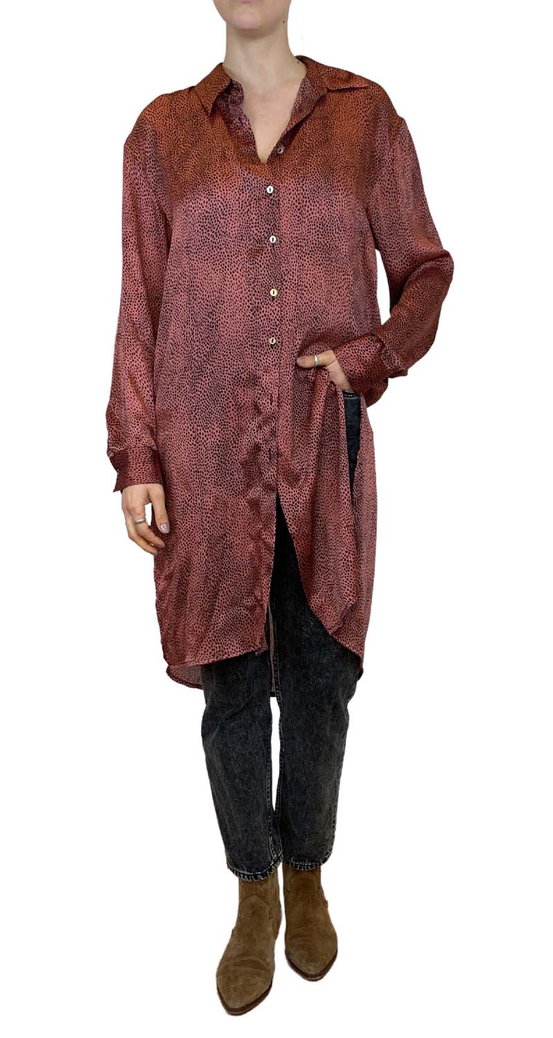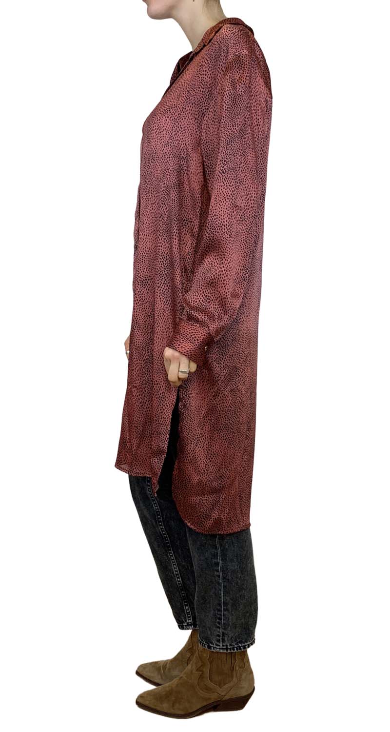Blusa larga Burdeo Animal Print con abertura a los costados.