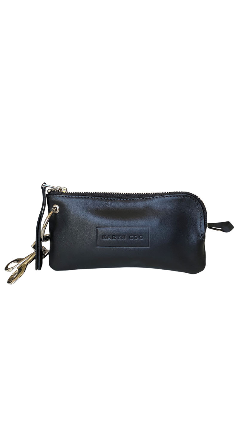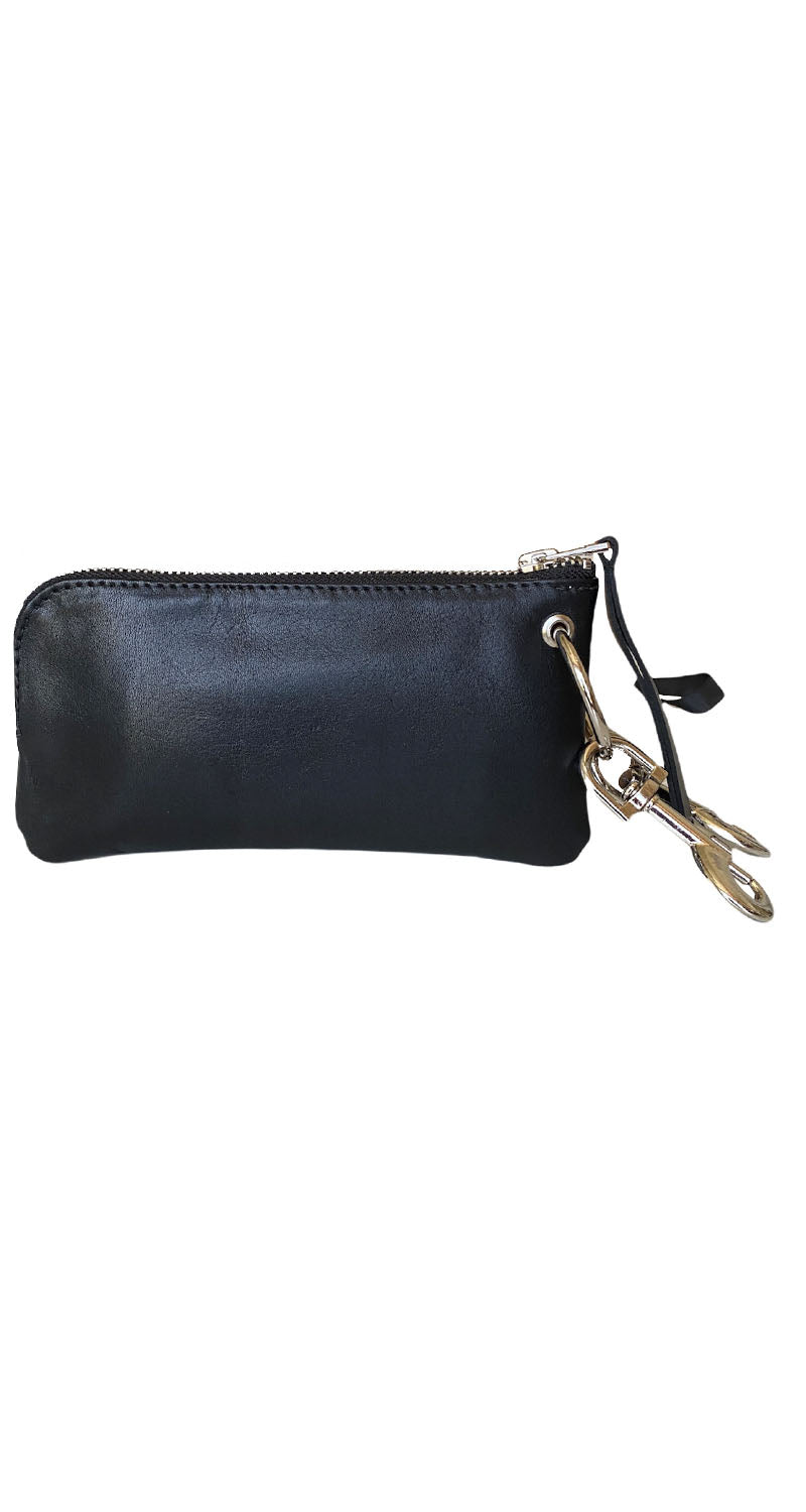 Porta celular tipo estuche 100% de cuero con enganche de mosquetón.