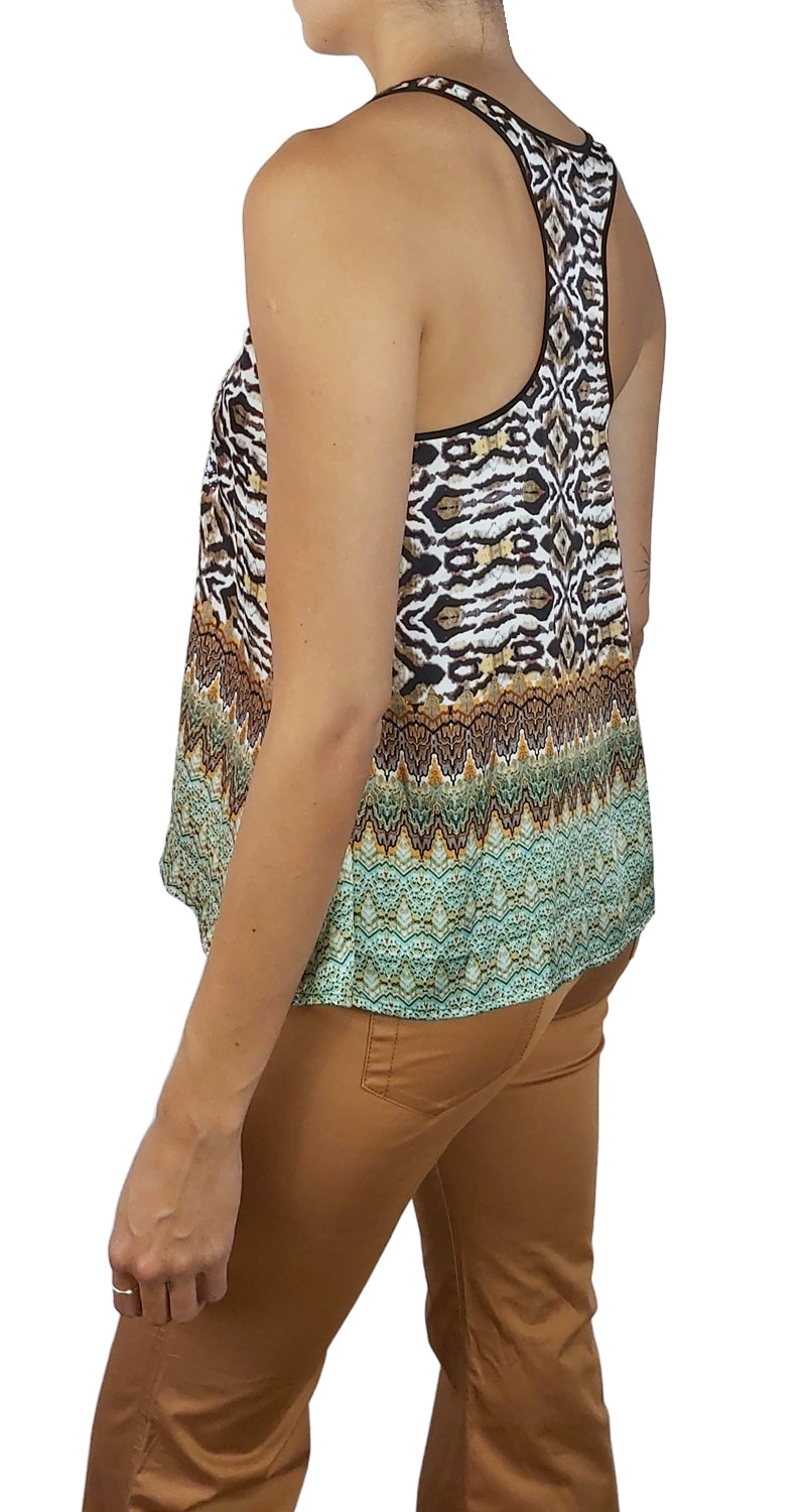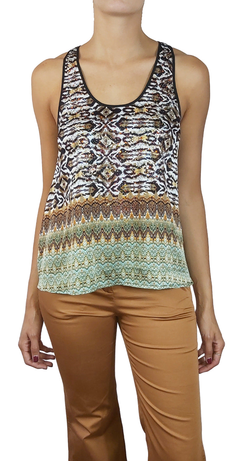 Blusa con estampado animal print y aplicación de brillos en delantero.