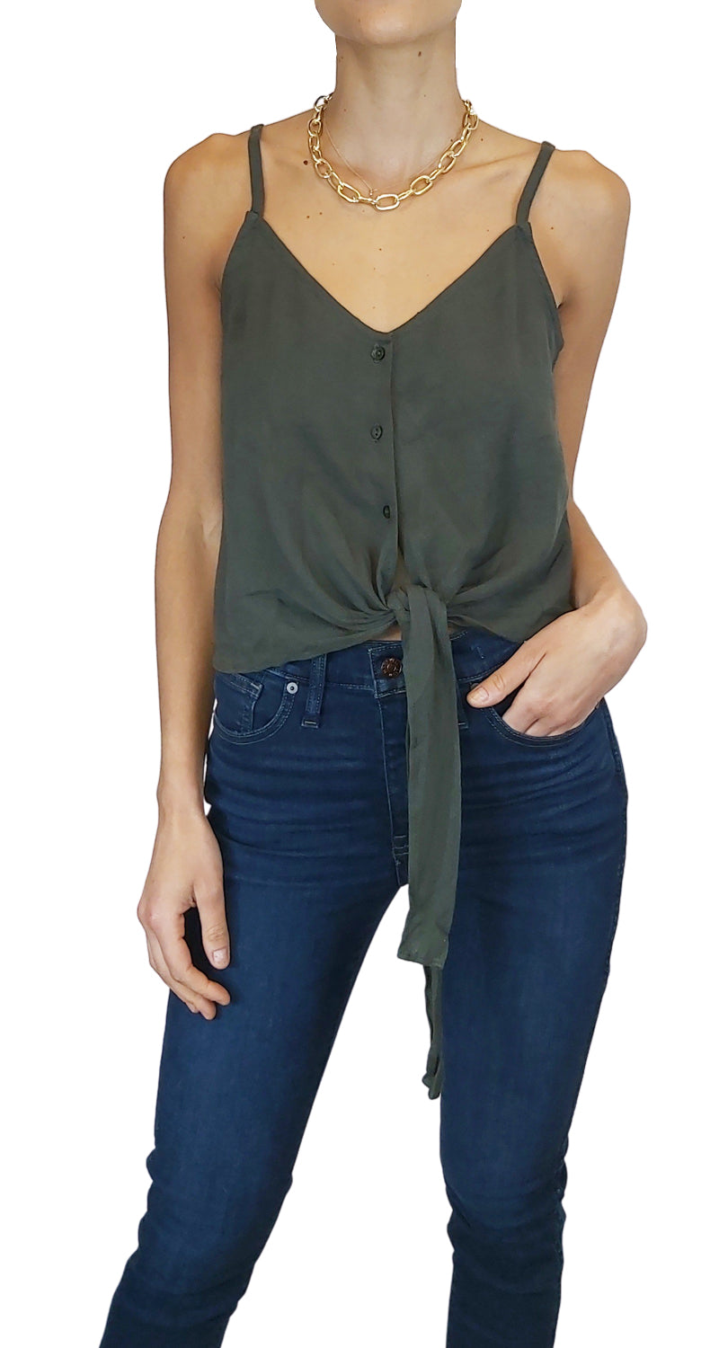 Crop Top de Lino Color Verde Olivo con pabilos, botones en delantero y nuedo.