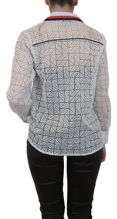 Blusa Blanca, con bordado de flores en delantero, con tachas y detalles de bisutería. Talla 2 de la marca.