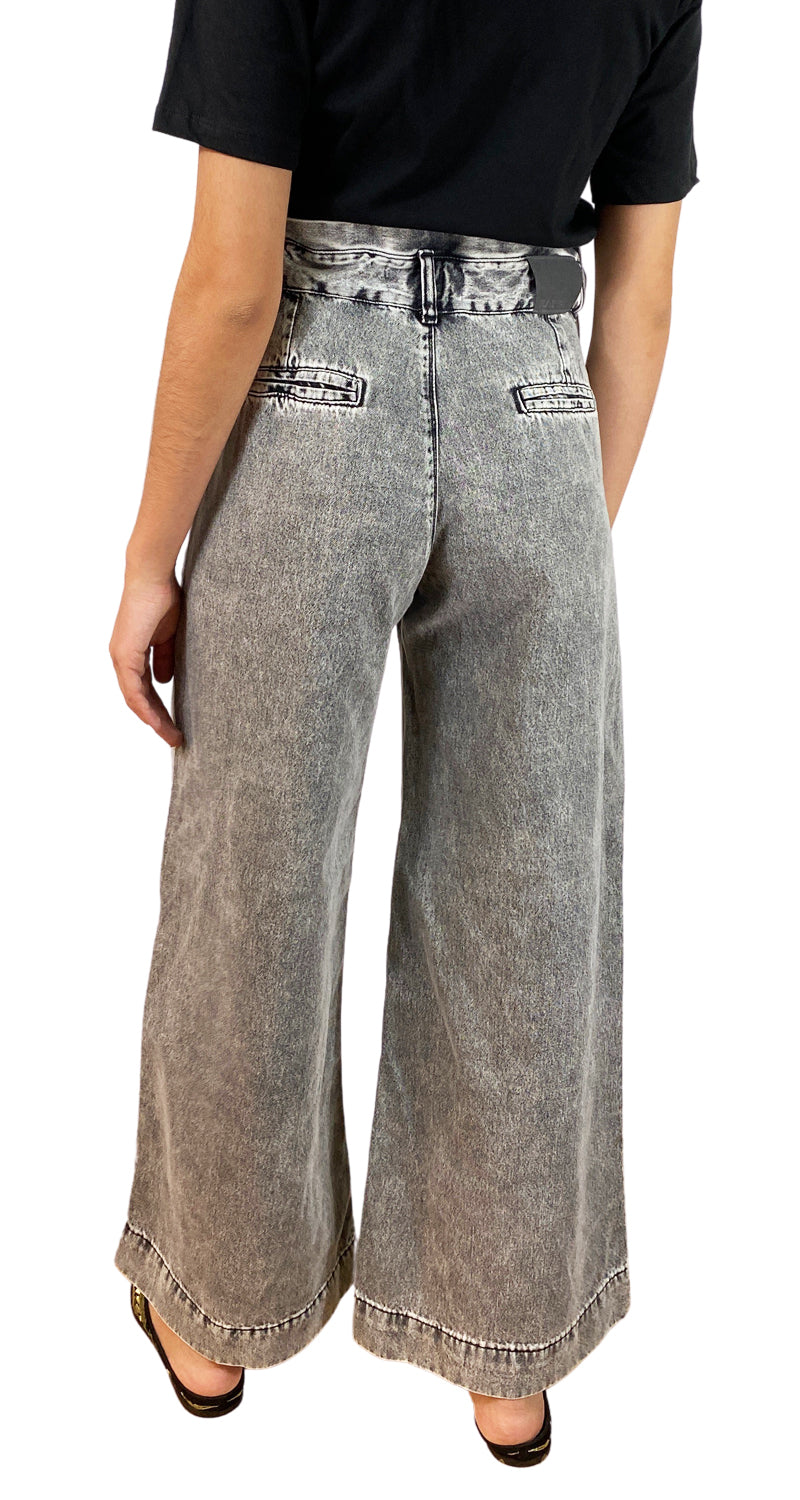 Jeans Gris Palazzo cintura elasticada dos bolsillo parte trasera.