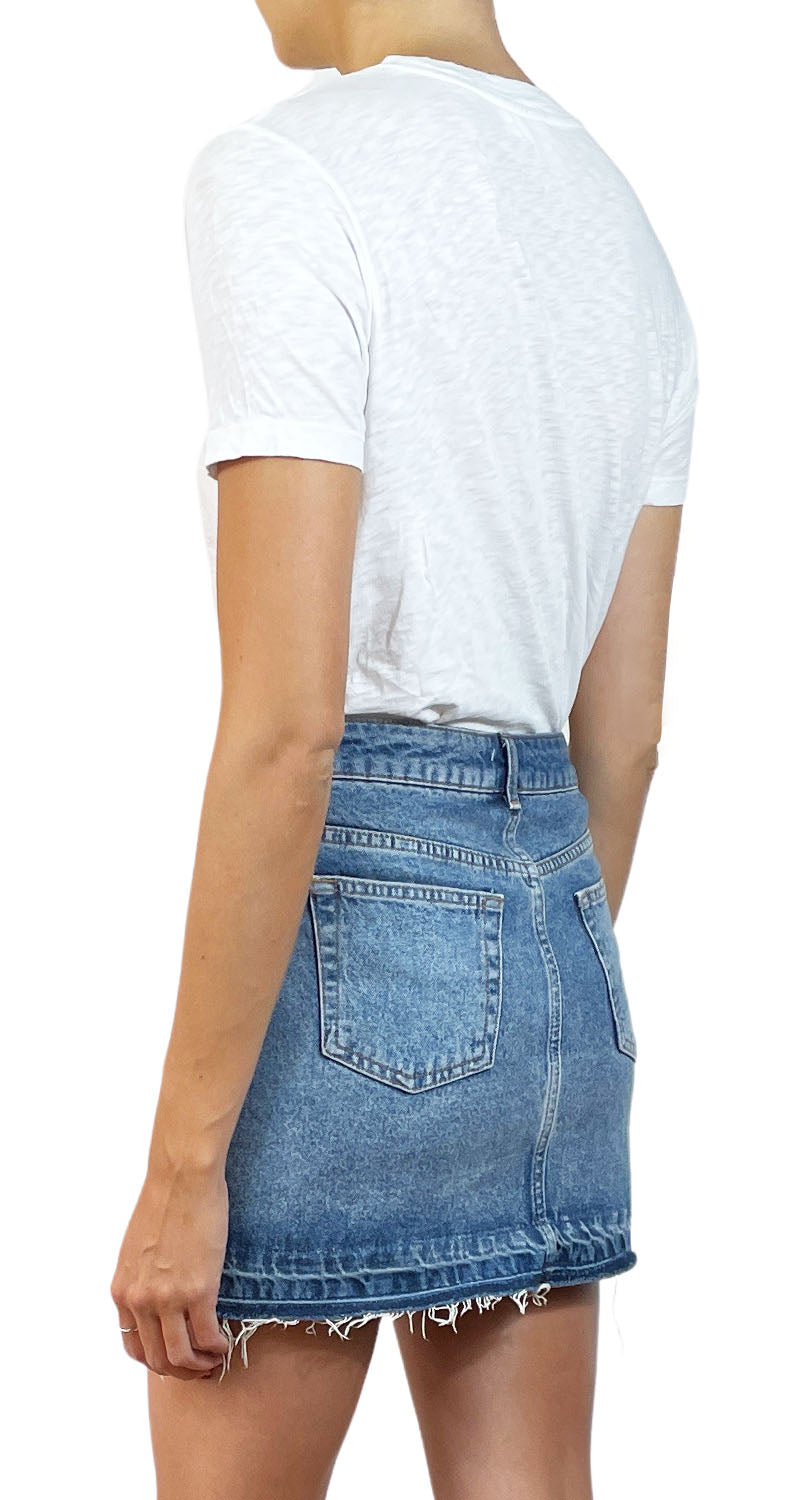Polera color Blanco cuello redondo con bordado de letras en delantero.