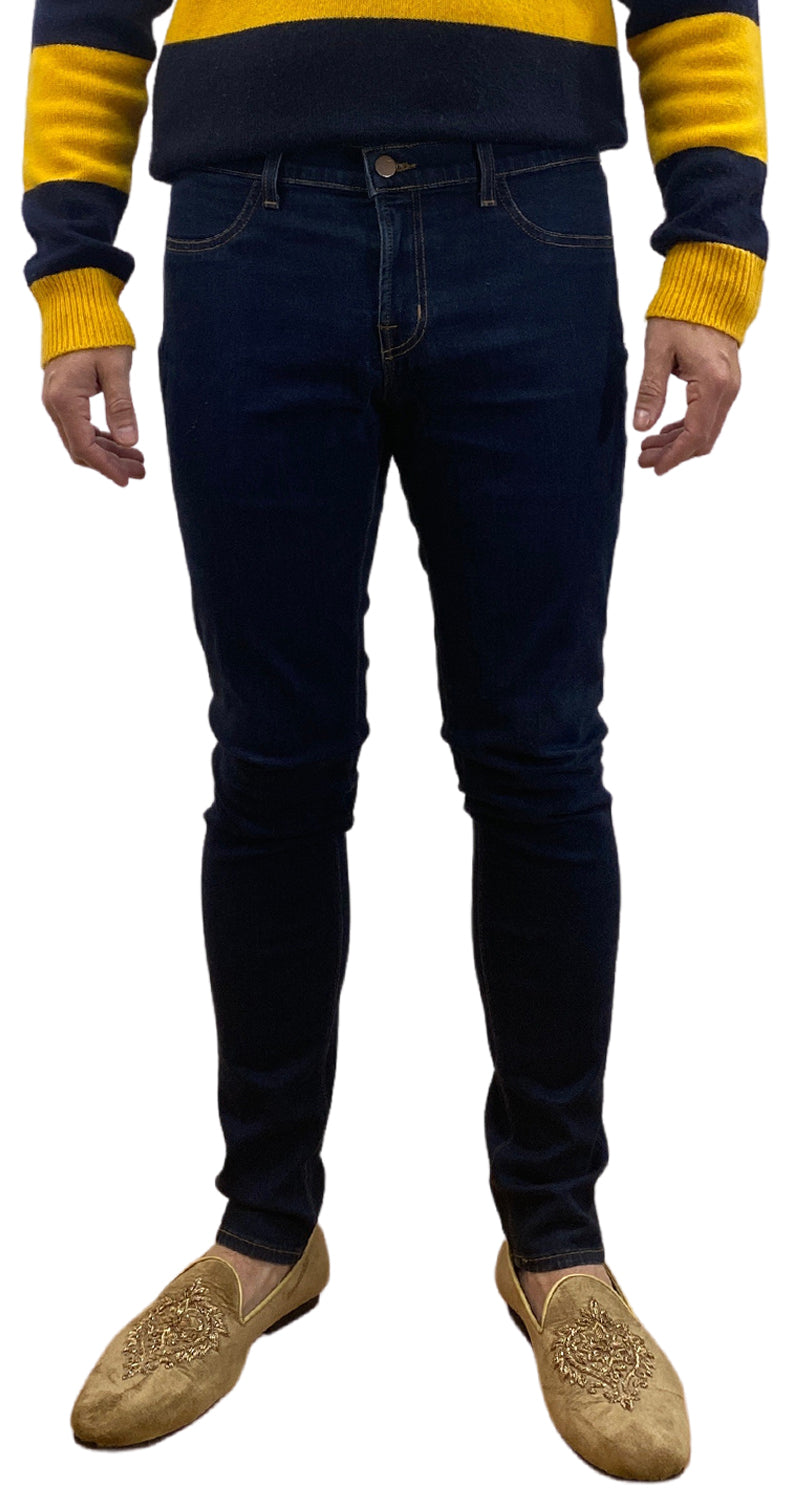 Jeans Denim color Azul con diseño de bolsillos traseros. Talla 32 de la marca. Altura modelo 1.70.