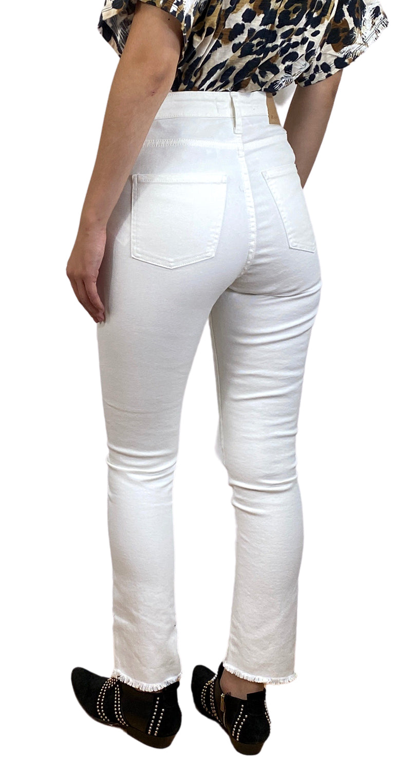 Jeans color Blanco de tiro alto, modelo 5 bolsillos.