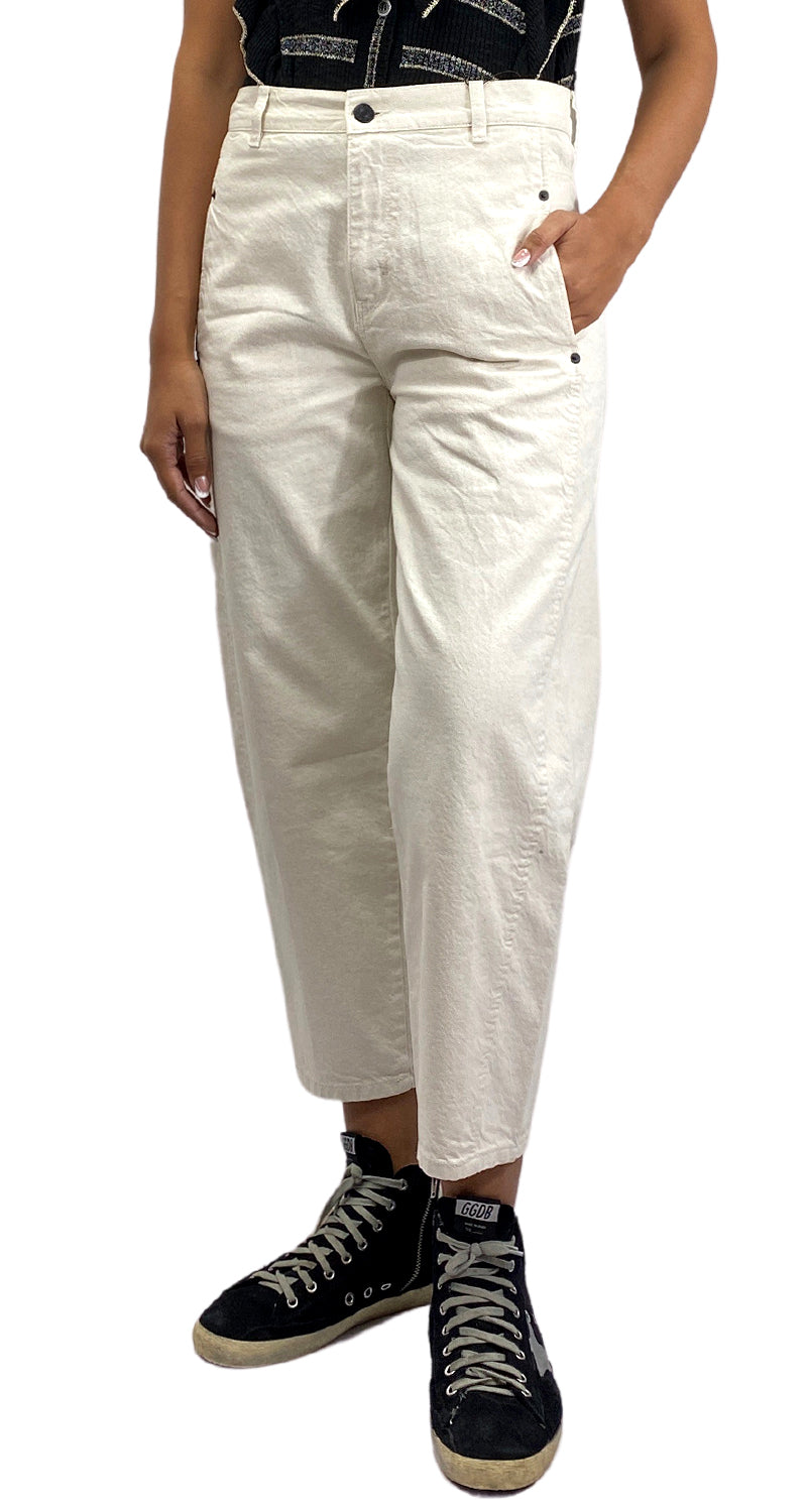 Jeans color Blanco con 4 bolsillos, cierre y botón frontal. Altura de modelo 1,76 Nuevo con etiqueta.