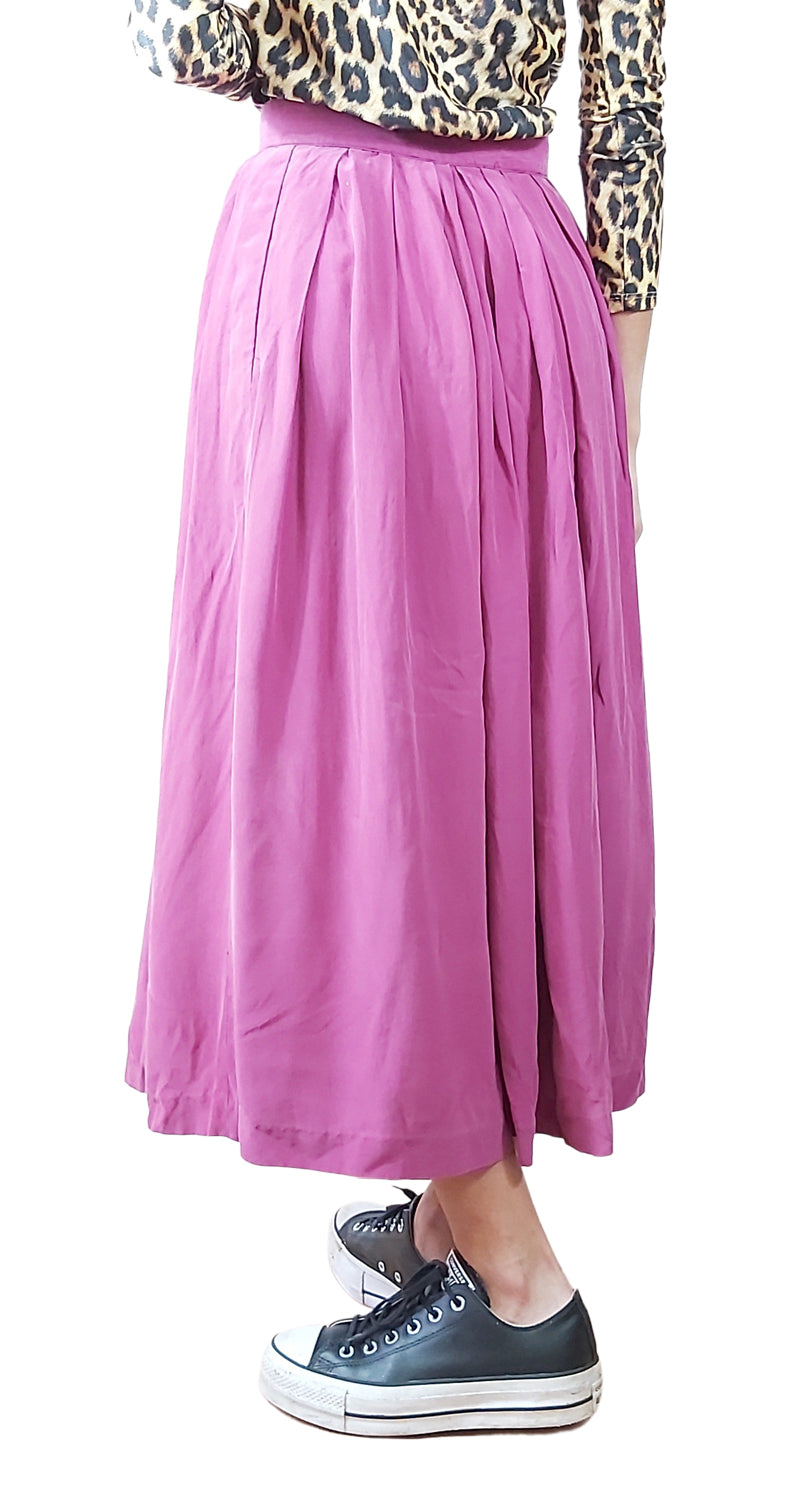 Falda Morada con botones en delantero y bolsillos en laterales. Con leves signos de uso.