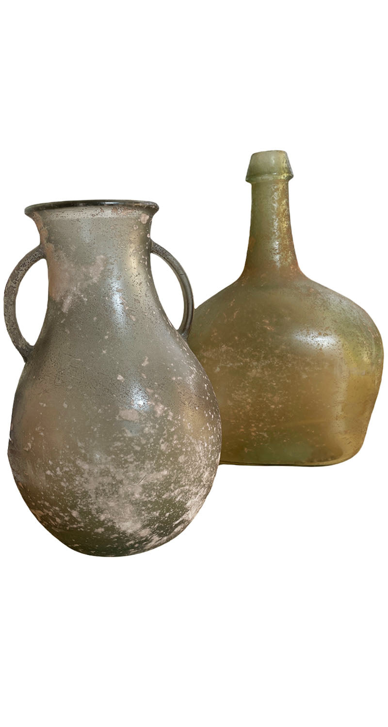 Set de Botellas Cafe con Detalle Rosado y Botella Gris con Asas y Detalle en blanco.