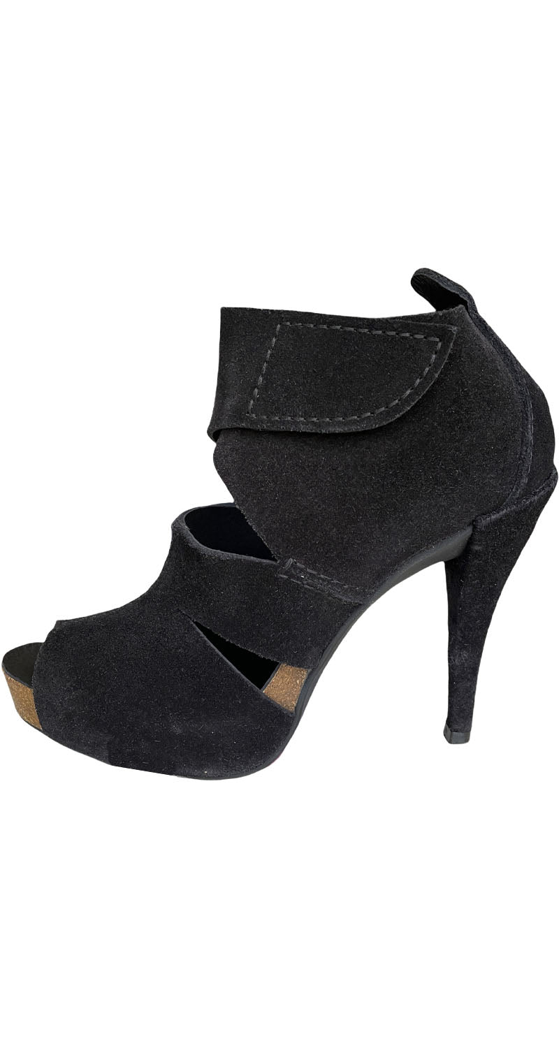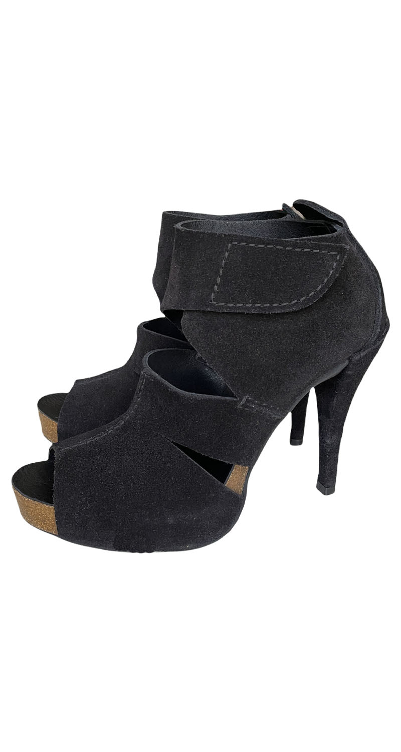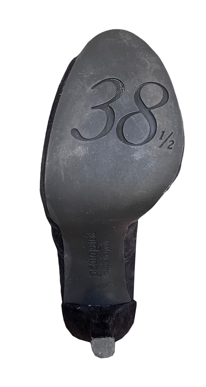 Tacos Negros con velcro, detalles de abertura hecho en España. Medida de taco: 12 cm. Leves signos de uso en suela.