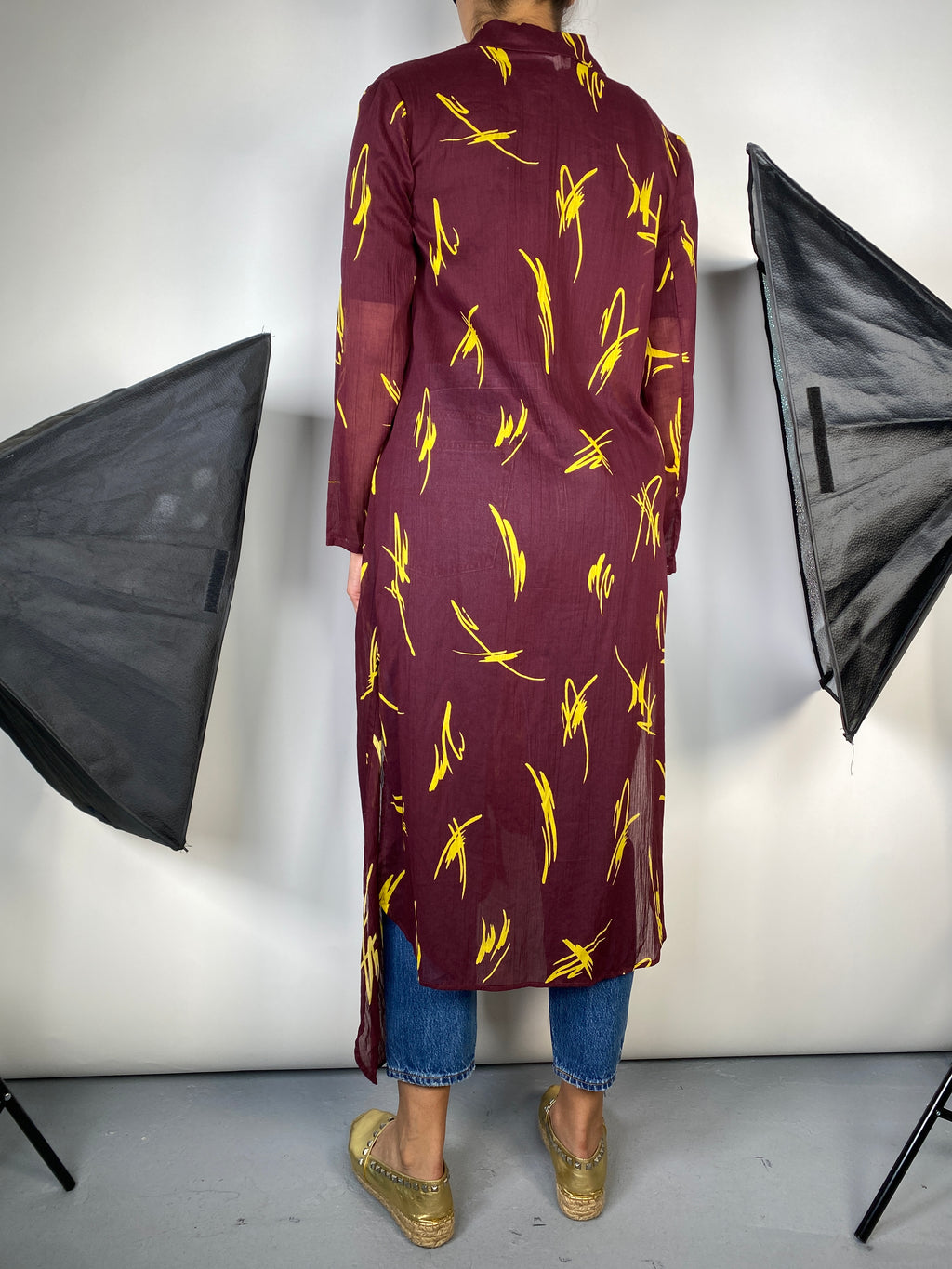Kimono Burdeo Estampado Amarillo