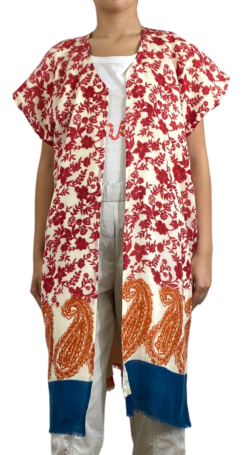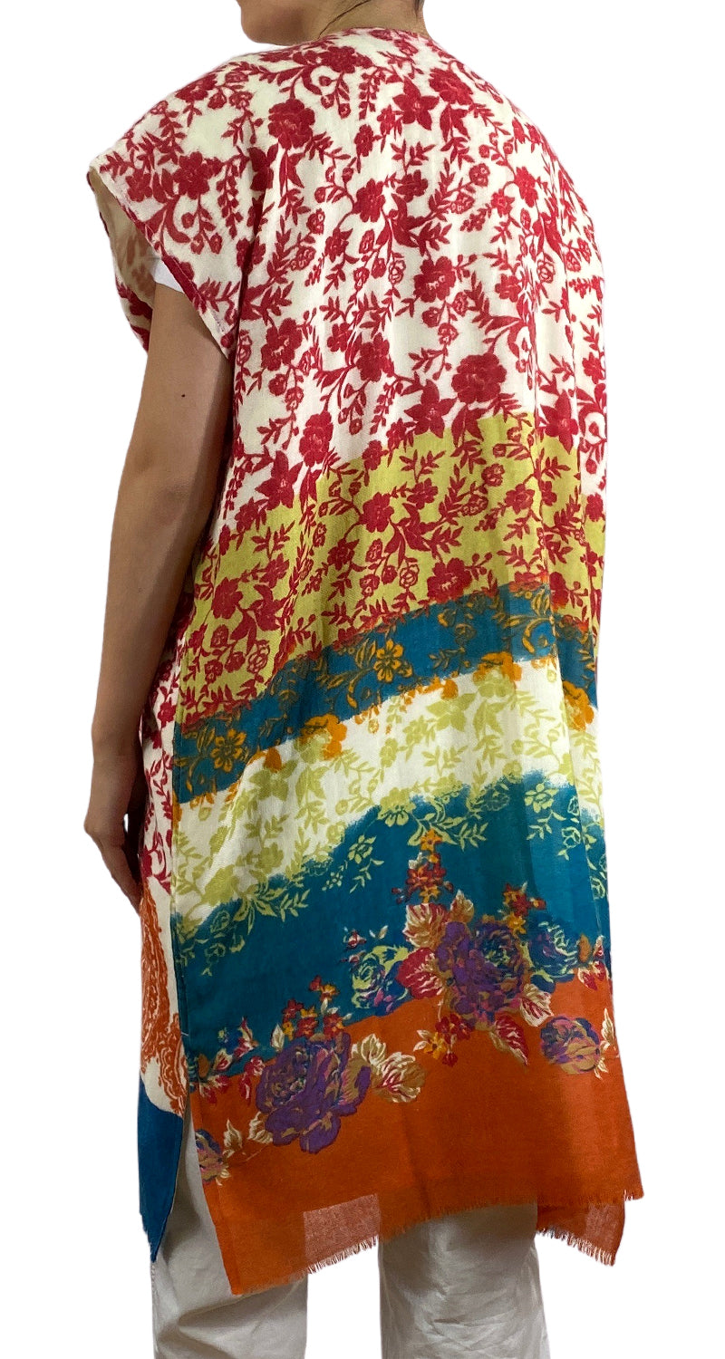 Kimono de lana con estampado de flores. Altura modelo 1.68.