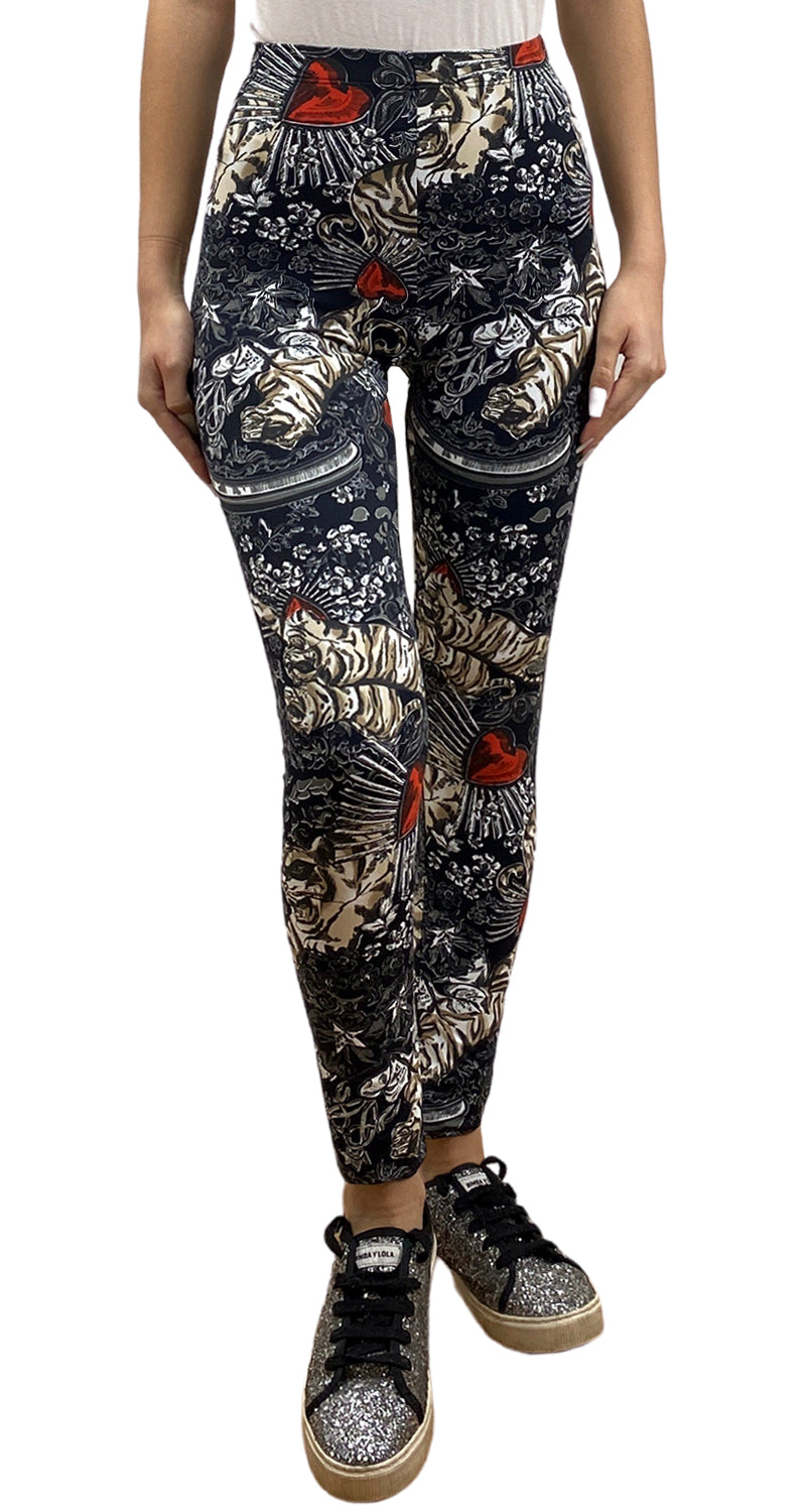 Leggings con estampado Multicolor de tigres y corazones. Altura de modelo 1,68