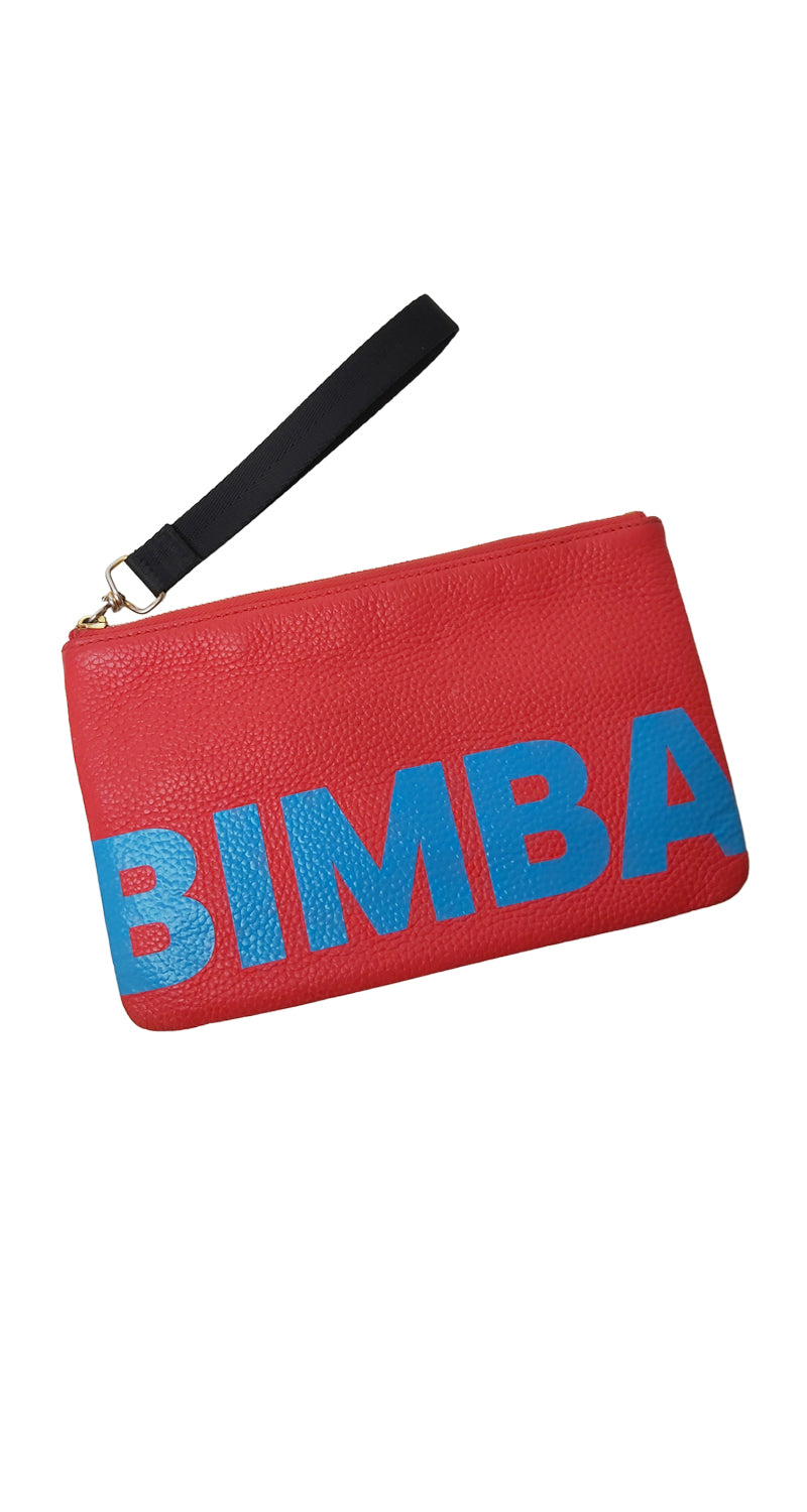 Neceser sobre de piel en color Rojo. Modelo plano con cierre y tirador con asa de mano. Exterior personalizado con logo estampado. Medidas: 23 x 15 x 1 cm.