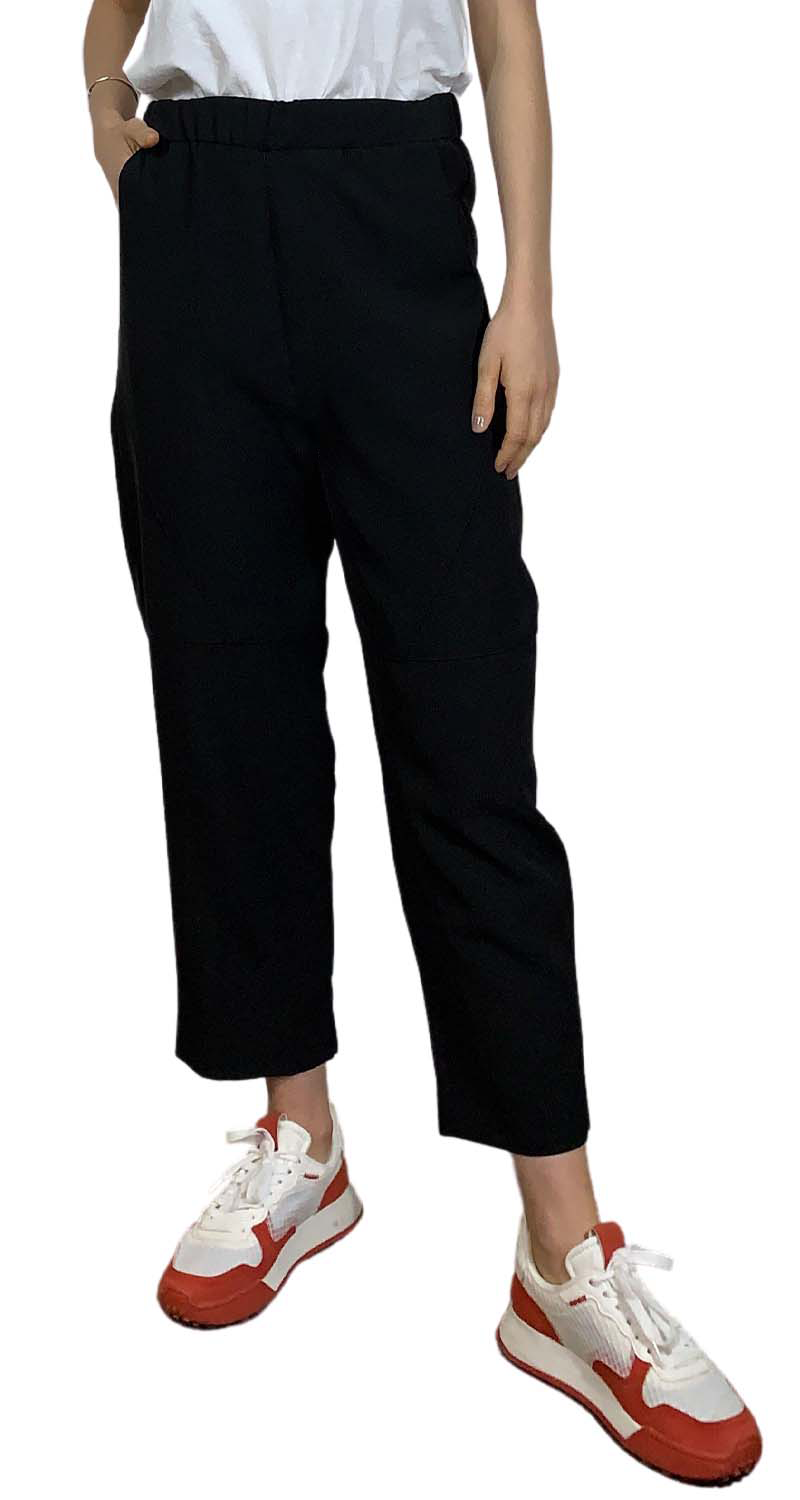 Pantalon estilo jogger Negro con pretina elasticada. Tiene cortes laterales en ruedo.