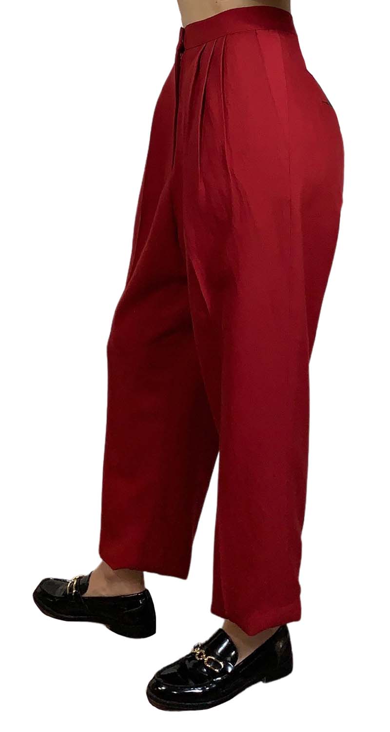 Pantalón de vestir de tiro alto Rojo con pinzas en pretina.