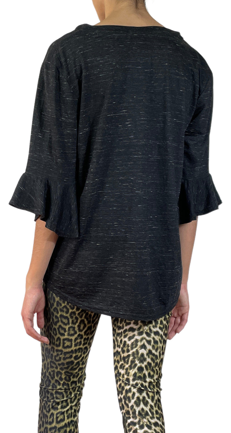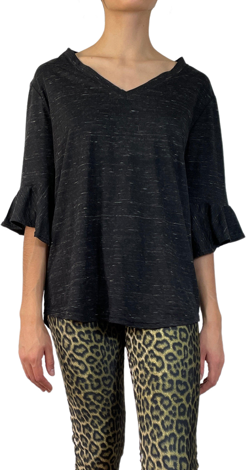 Polera Negra con vuelos y cuello en V.