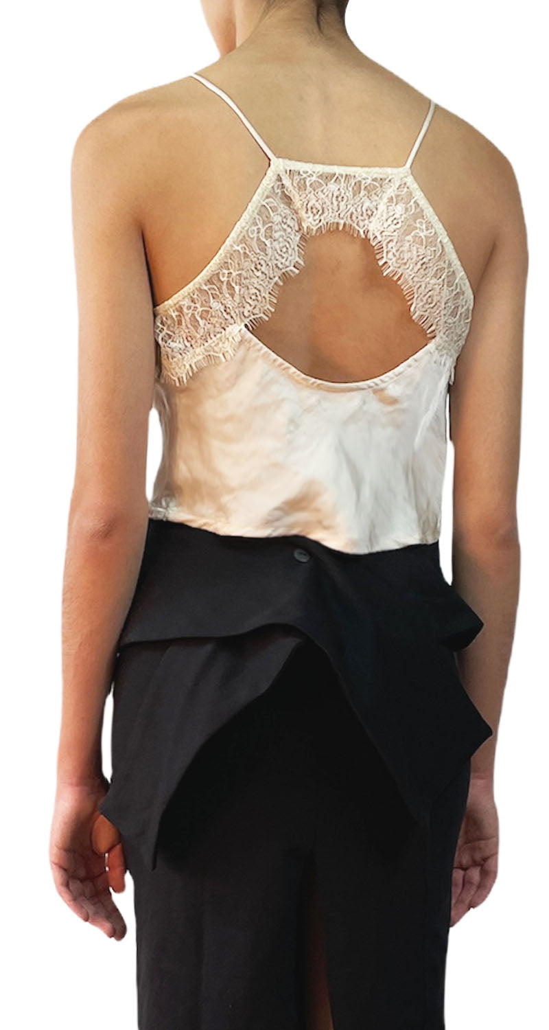 Crop Top color Blanco con detalle de encaje en delantero y espalda. Espalda abierta.