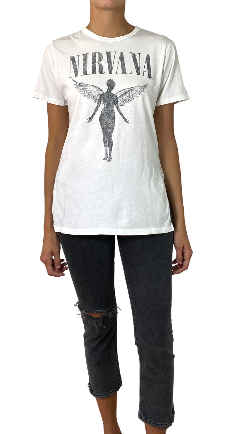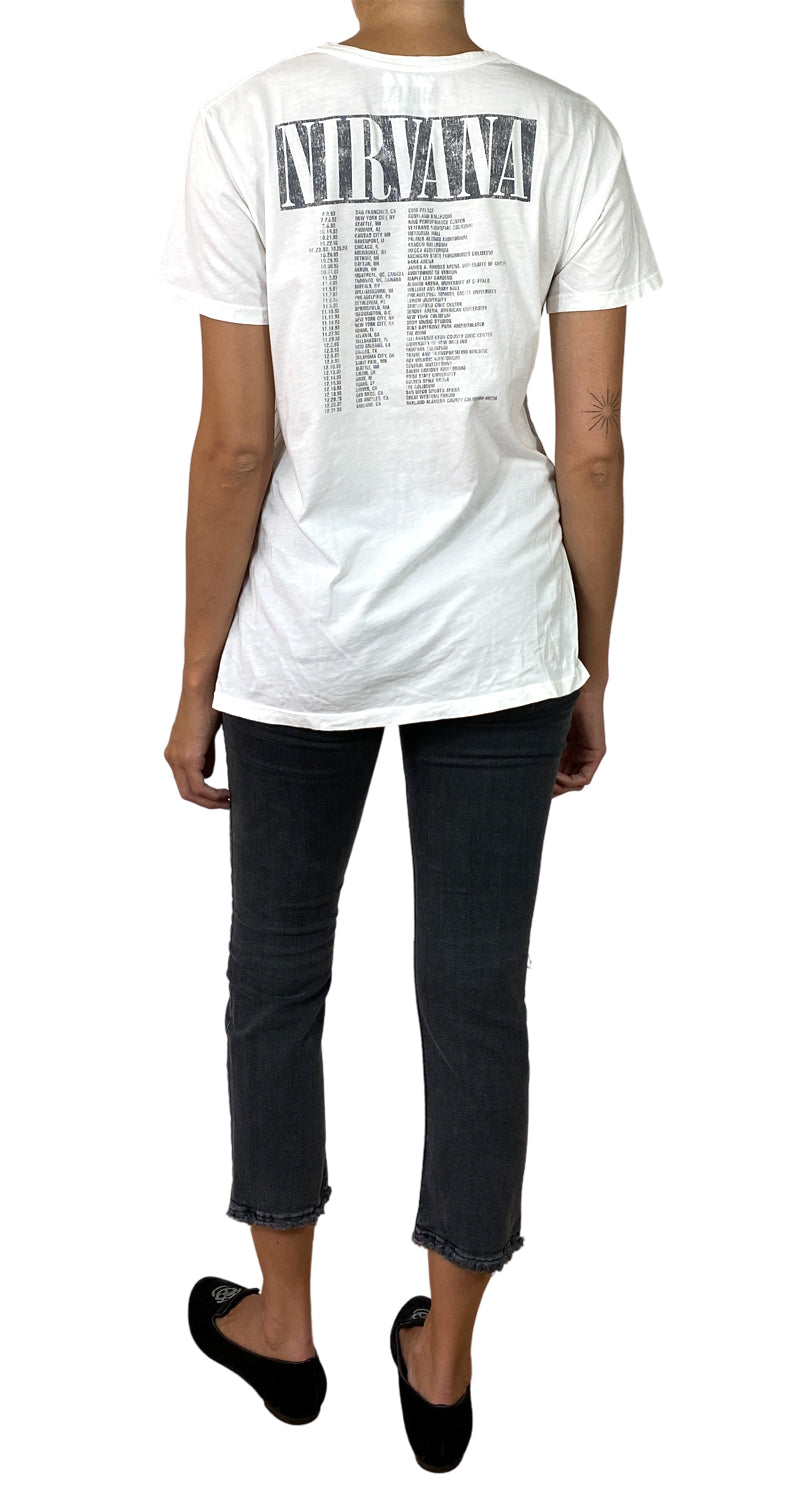 Polera Blanca de la banda Nirvana del disco In Utero, espalda con fechas tour año 93'.