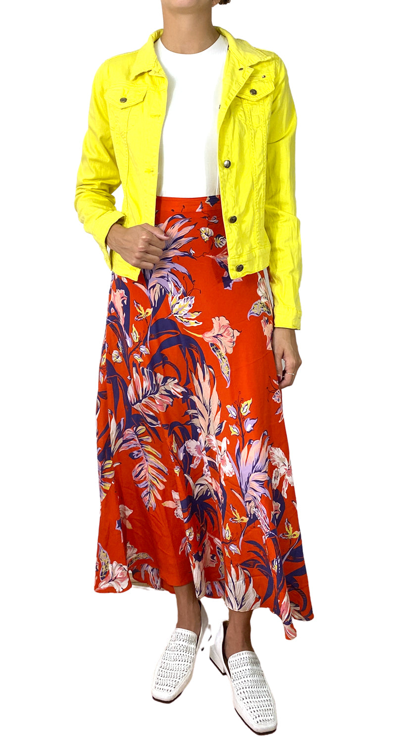 Chaqueta denim Amarilla con bolsillos de solapa en delantero. Talla 8 US.
