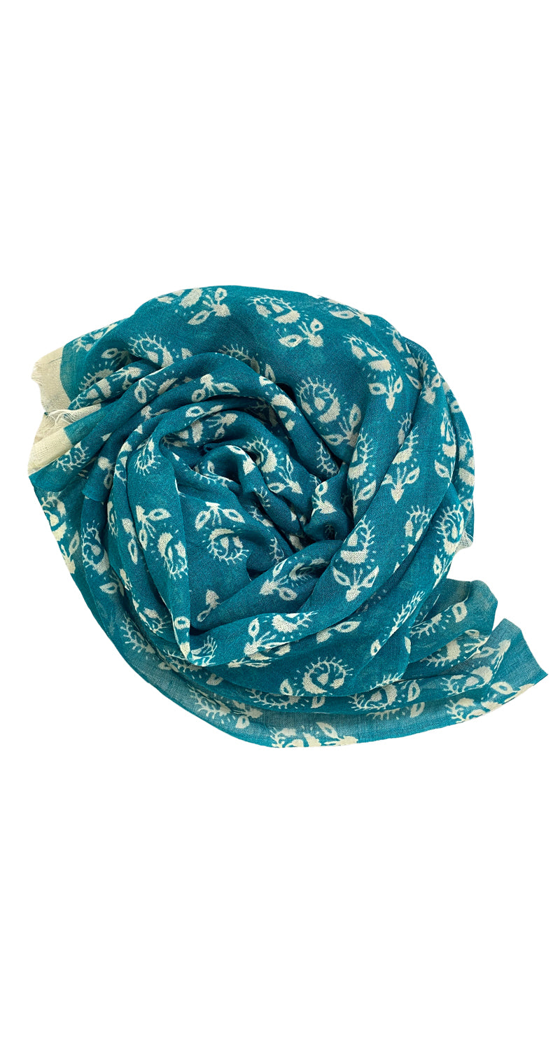 Pañuelo Verde con patrón floral. Medidas 185 x 85 cm.