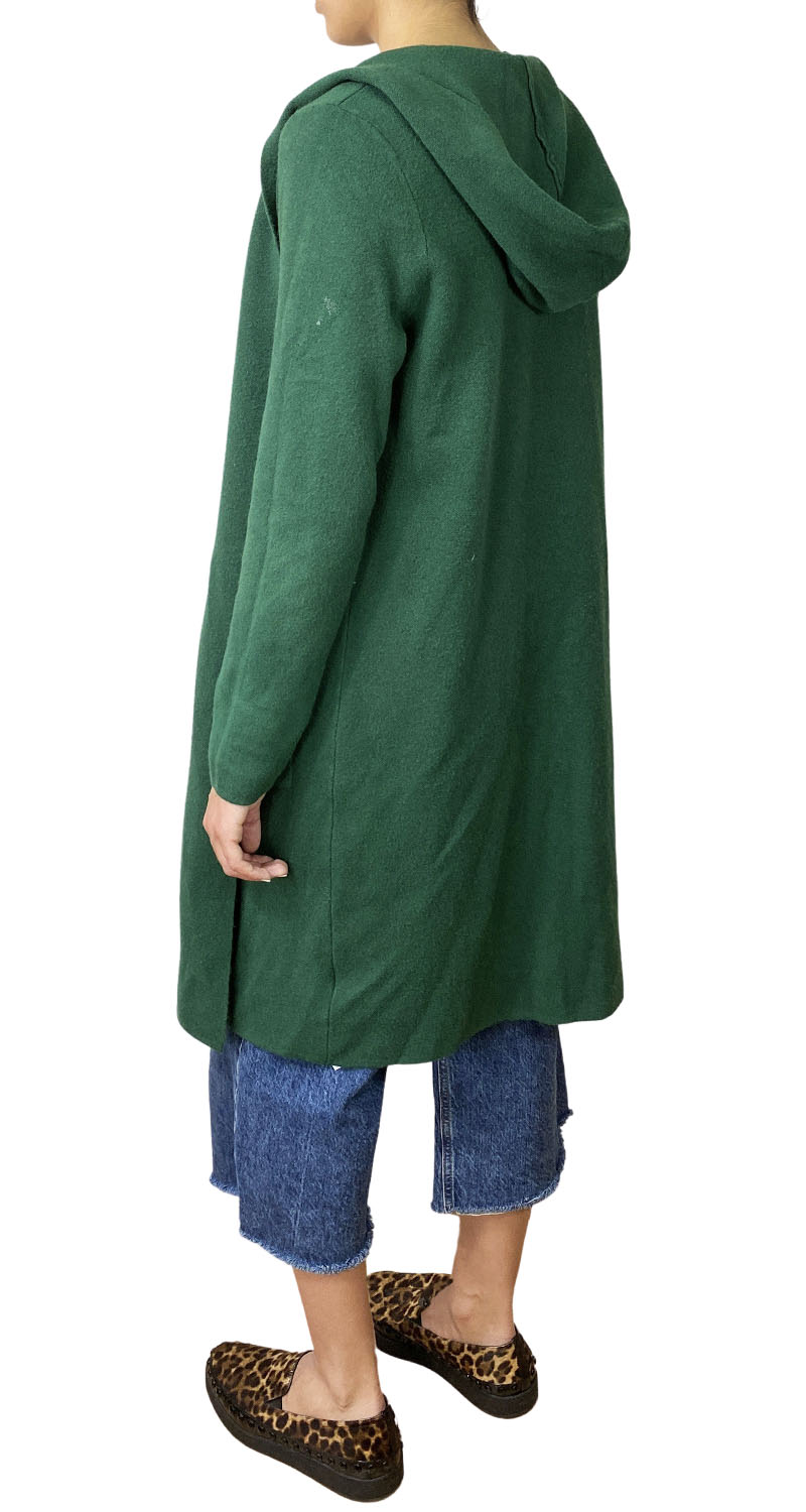 Sweater color Verde abierto con bolsillos en delantero y gorro.