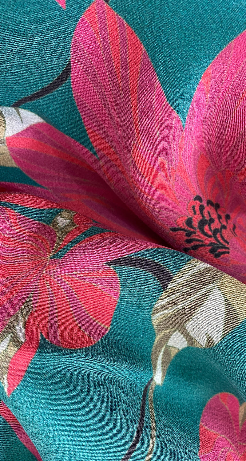 Vestido Seda Verde Flores