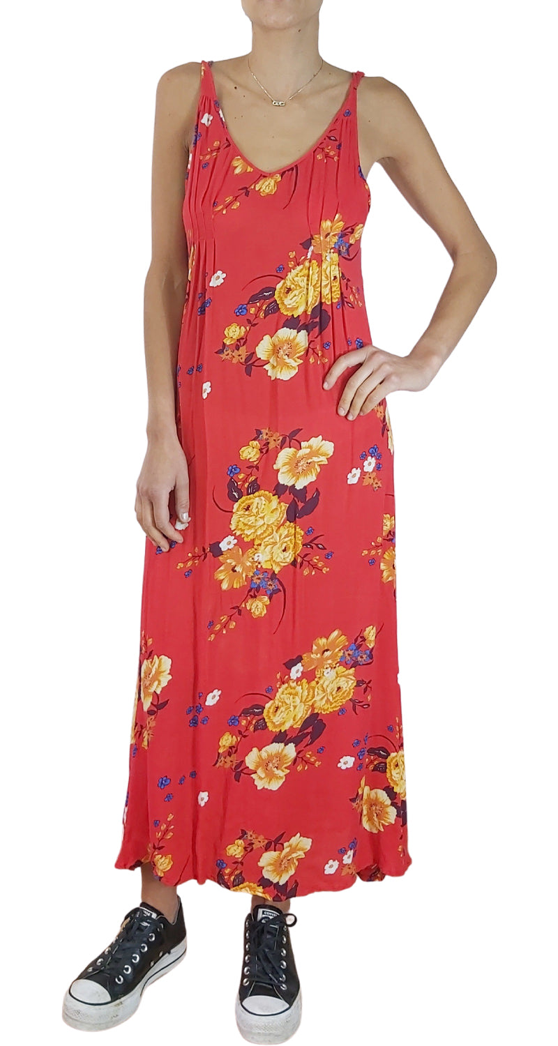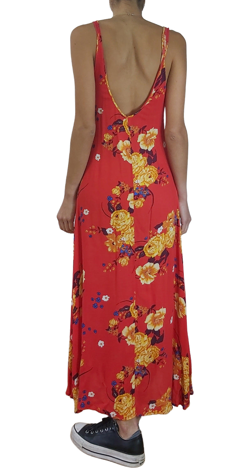 Vestido Rosado con estampado de flores, con escote en centro espalda.