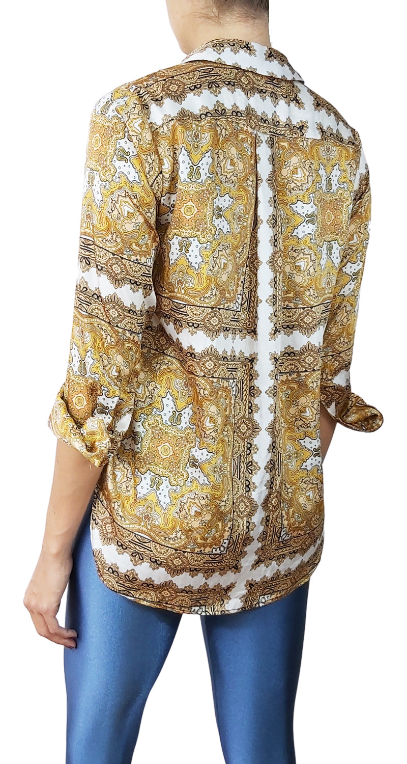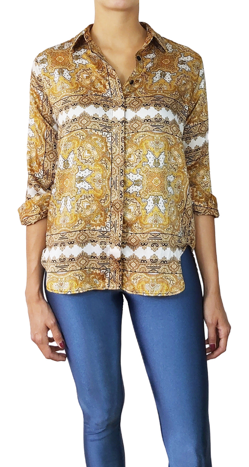 Blusa Estampada Paisley en tonos Dorados Café y Amarillo.