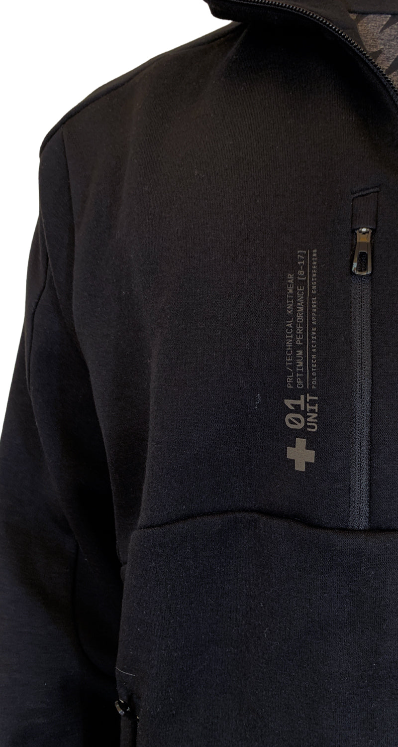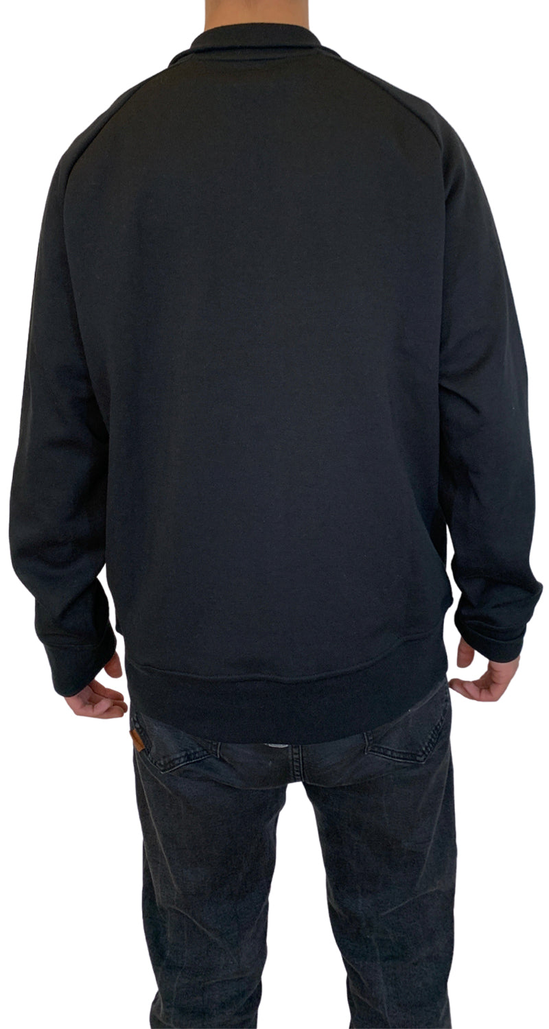 Polerón color Negro con cierre en delantero y 3 bolsillos.