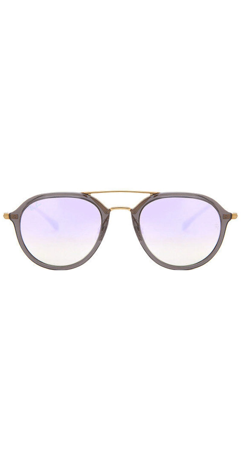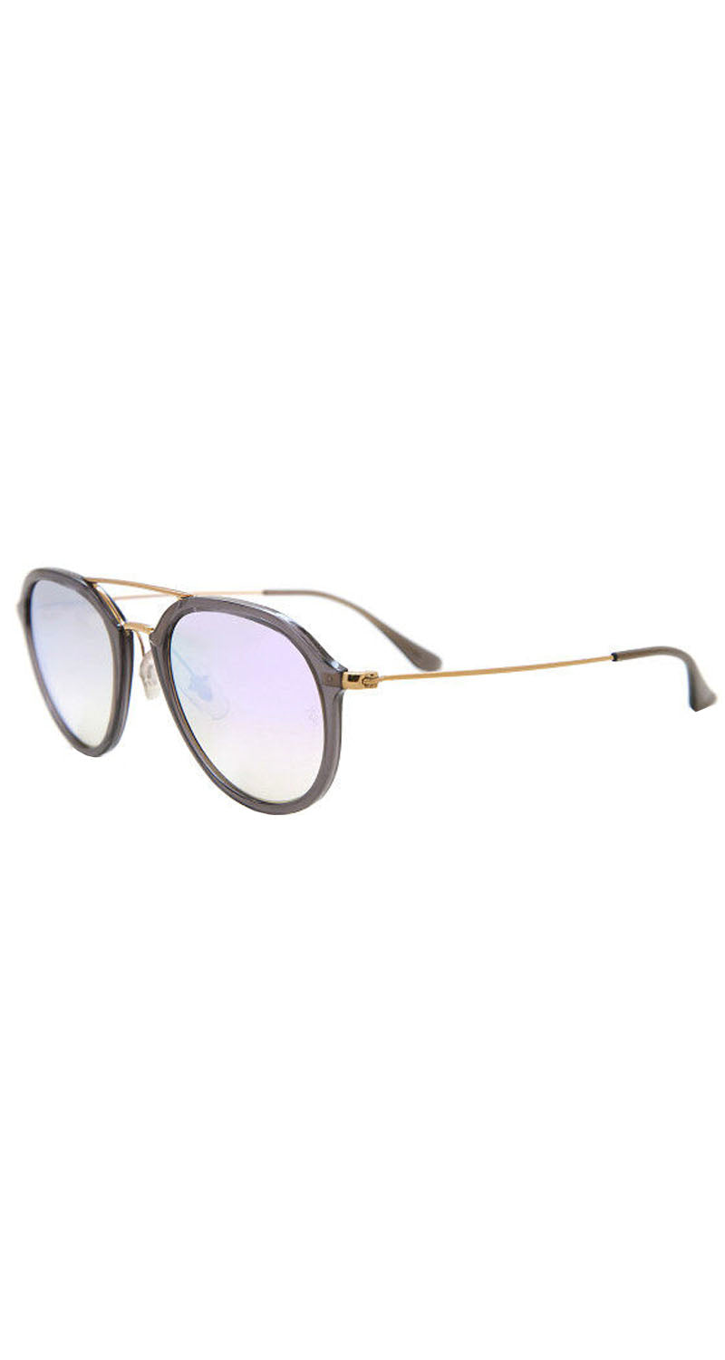 Anteojos de marco Gris con cristal espejado. Varillas y puente Dorado.