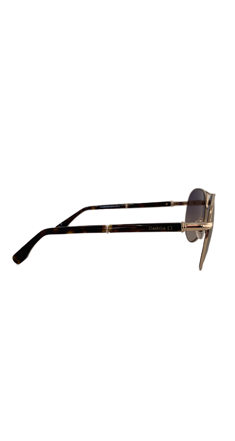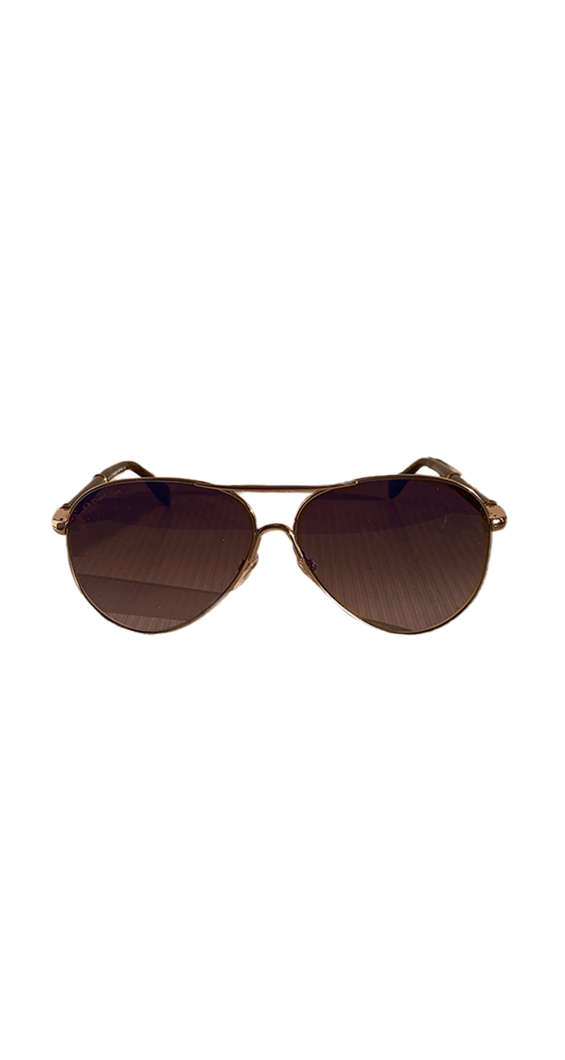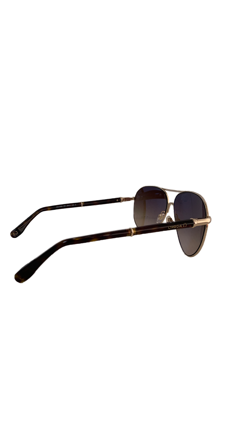 Lentes de sol Café aviador con marco Dorado. Caja en mal estado.
