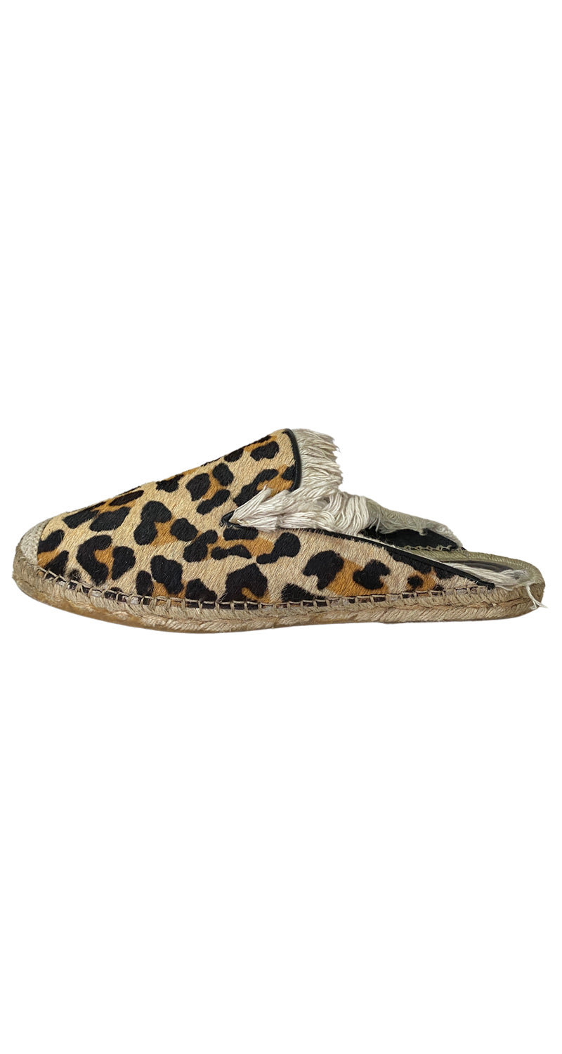 Mules de piel Animal Print con flecos Beige en bordes. Talla 9 de la marca.