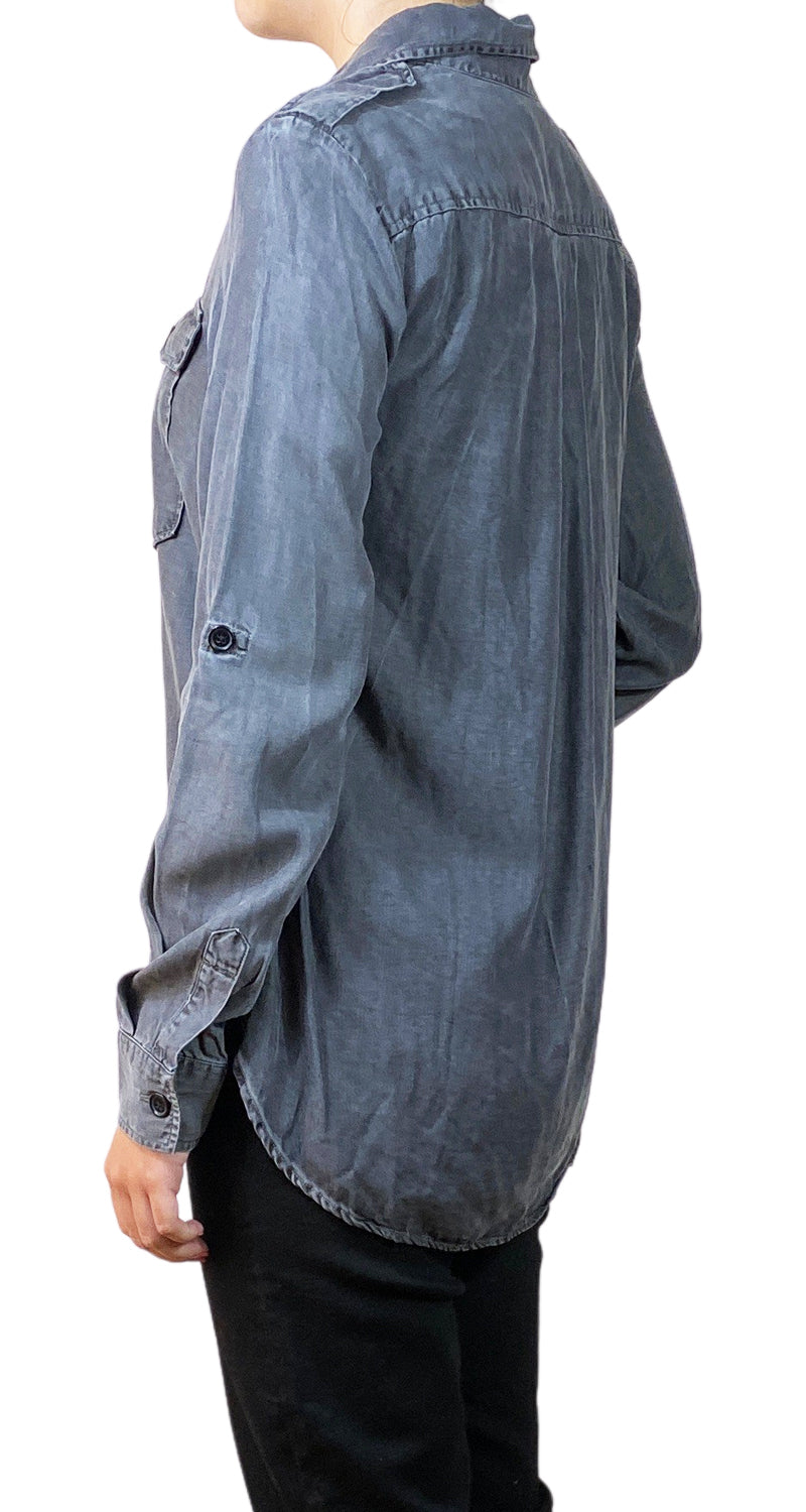 Blusa color Grs con botones negros y bolsillos en delantero.