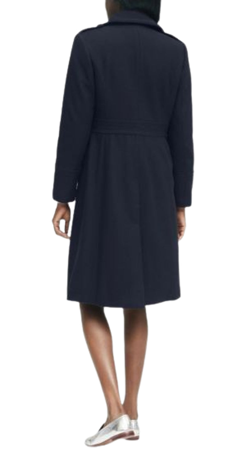 Abrigo de Lana color Navy con corte militar, doble botonadura, bolsillos en costados.