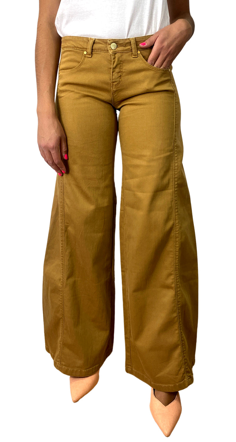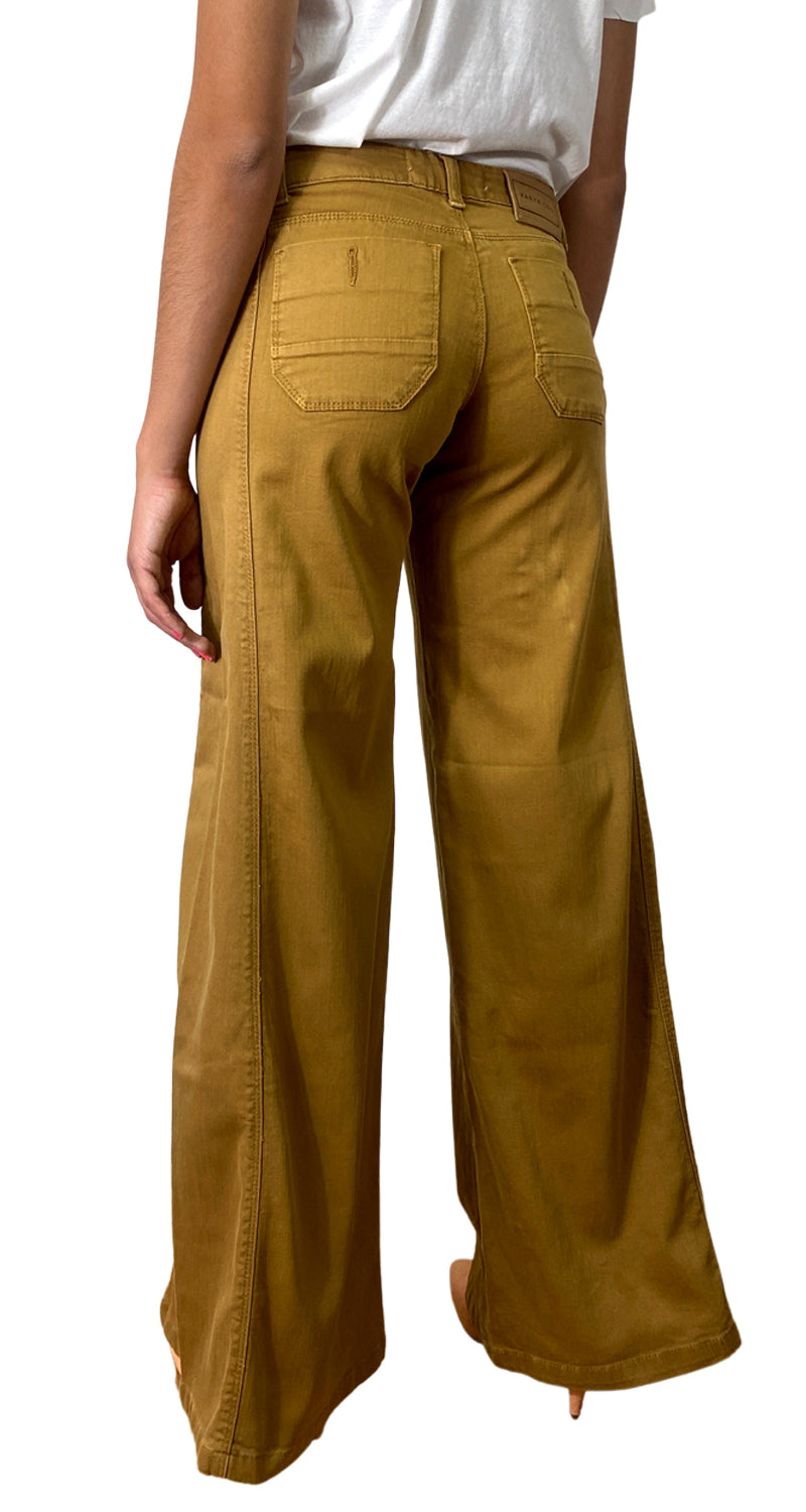 Pantalón Denim color Café con piernas anchas, 4 bolsillos, Talla 1 de la marca.