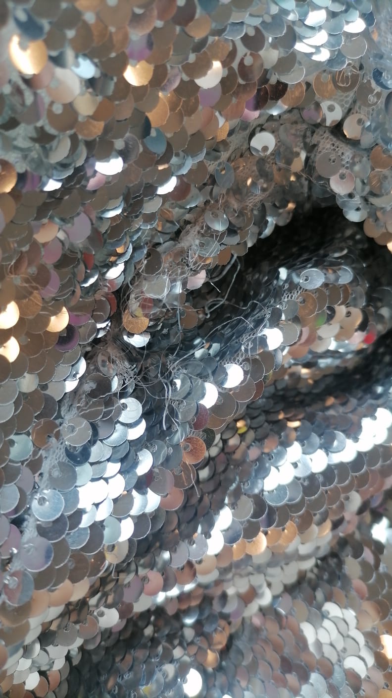 Altura de modelo 1,68. No especifica talla. Presenta detalles en costuras.