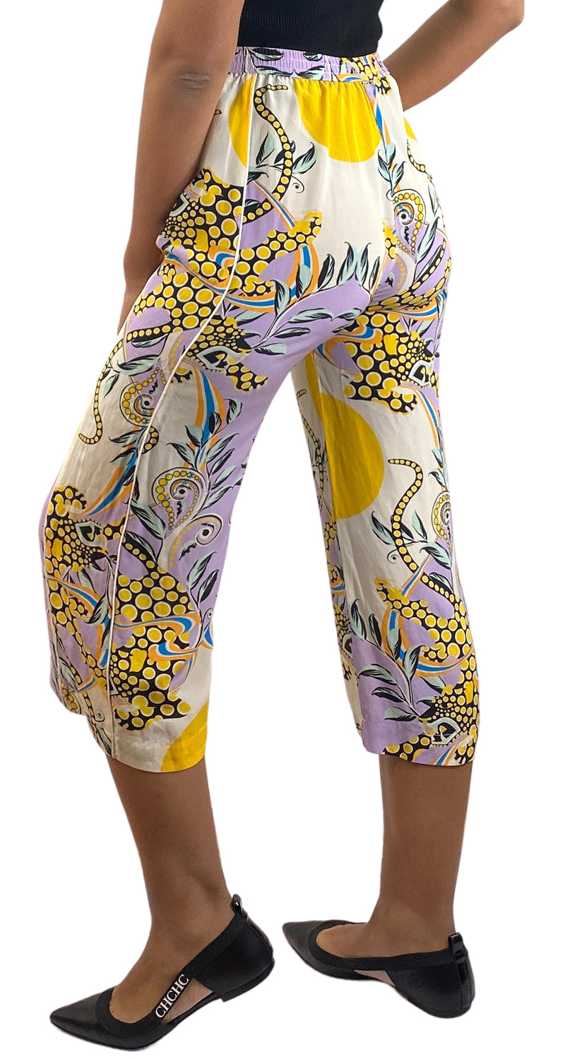 Pantalón de Seda con estampado Multicolor, pretina elasticada. Talla 1 de la marca. Altura de modelo 1,76