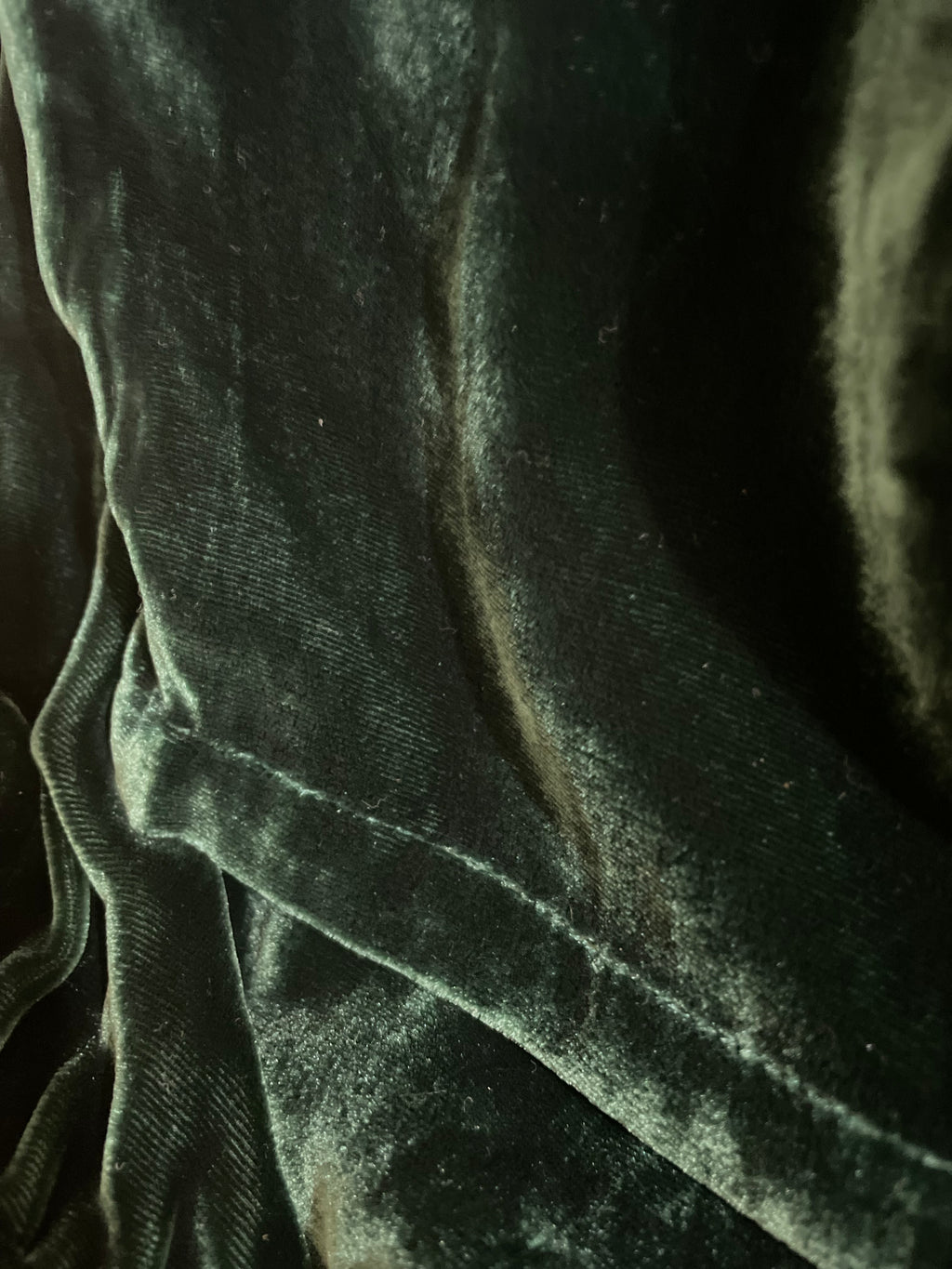 Pantalón Velvet color Verde con pretina elasticada y bolsillos. Altura modelo 1.68.