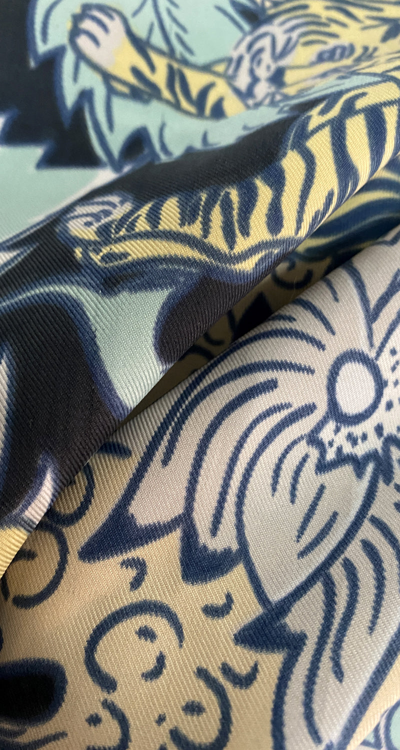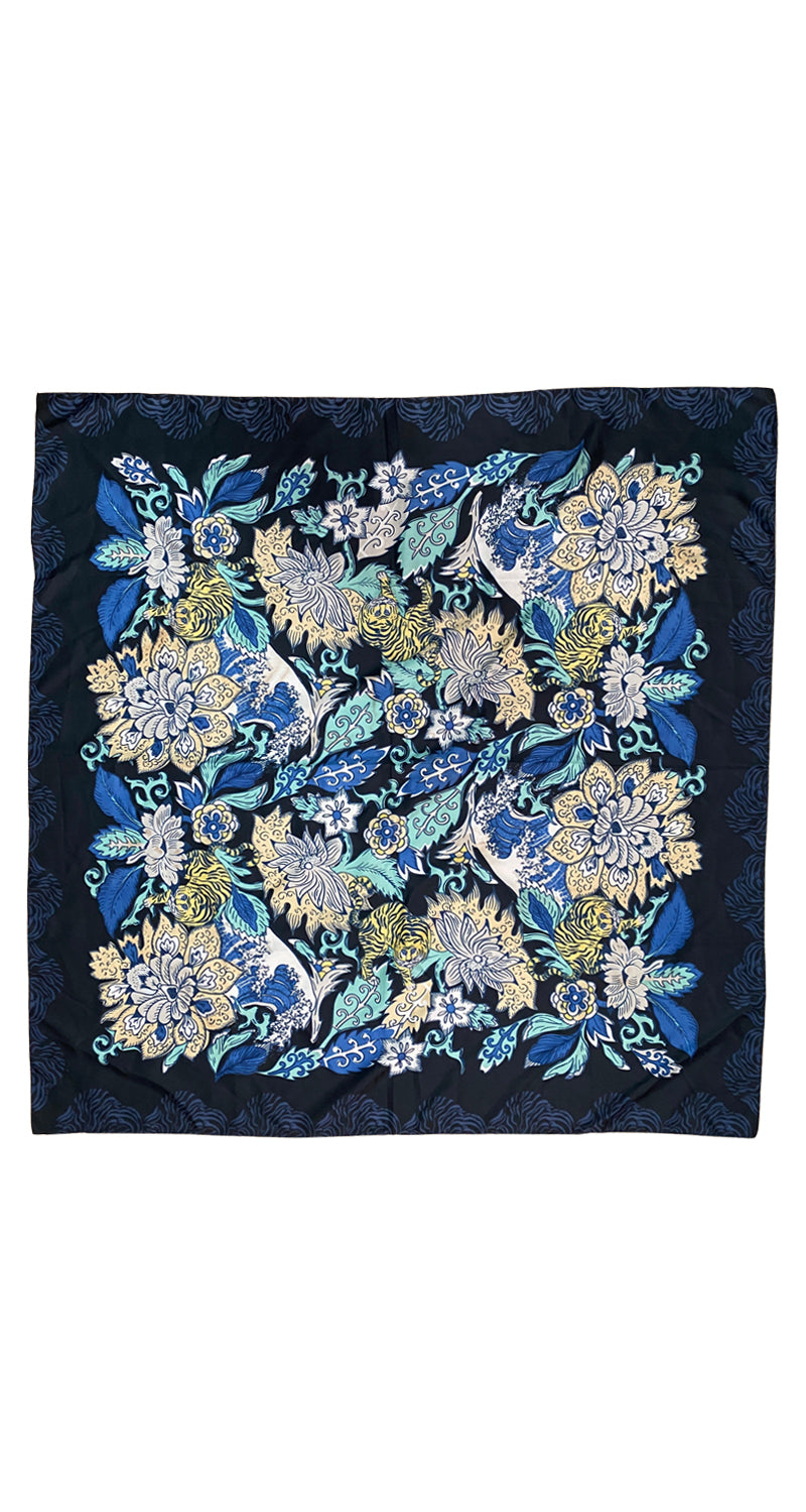 Pañuelo color Azul con diseño de flores. Medidas: 90 cm x 90 cm.
