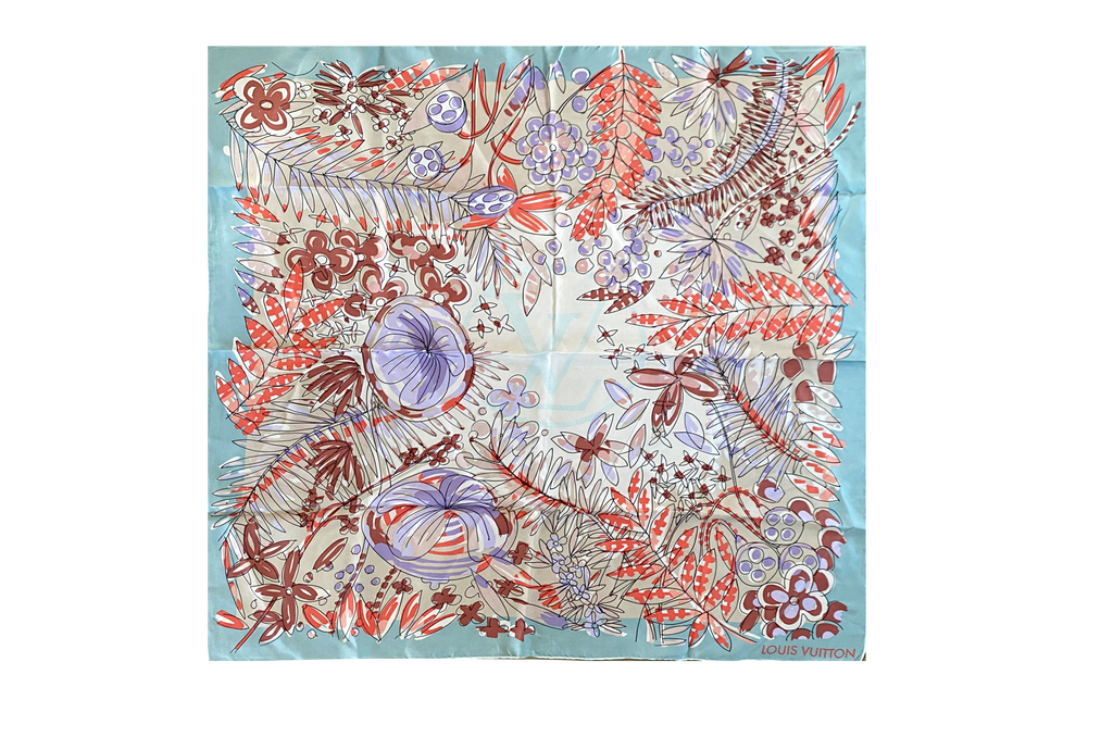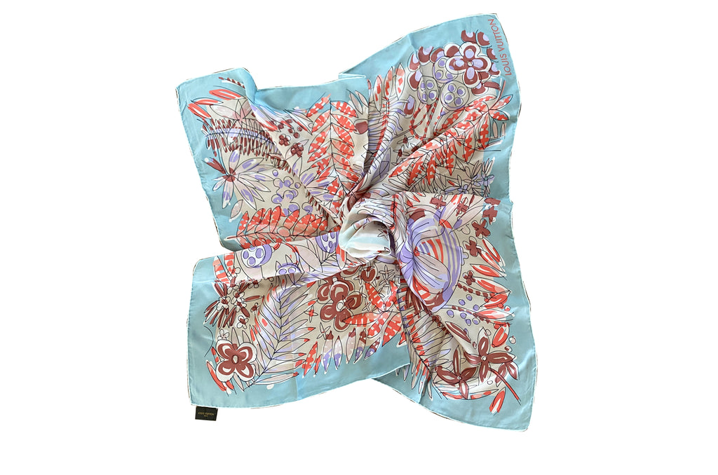 Pañuelo de seda con estampado floral de 90 cm. X 90 cm.