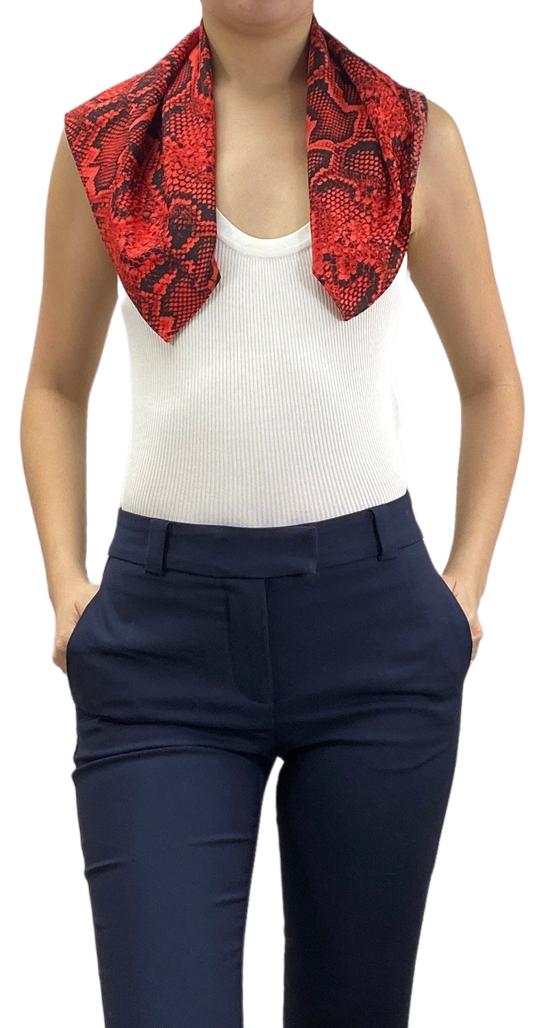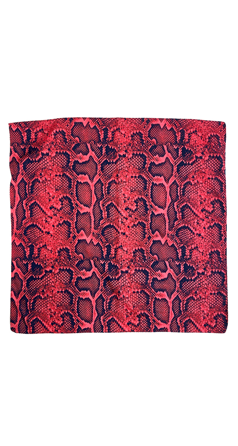 Pañuelo color Rojo con con estampado snake. Medidas: 55 cm x 55 cm.