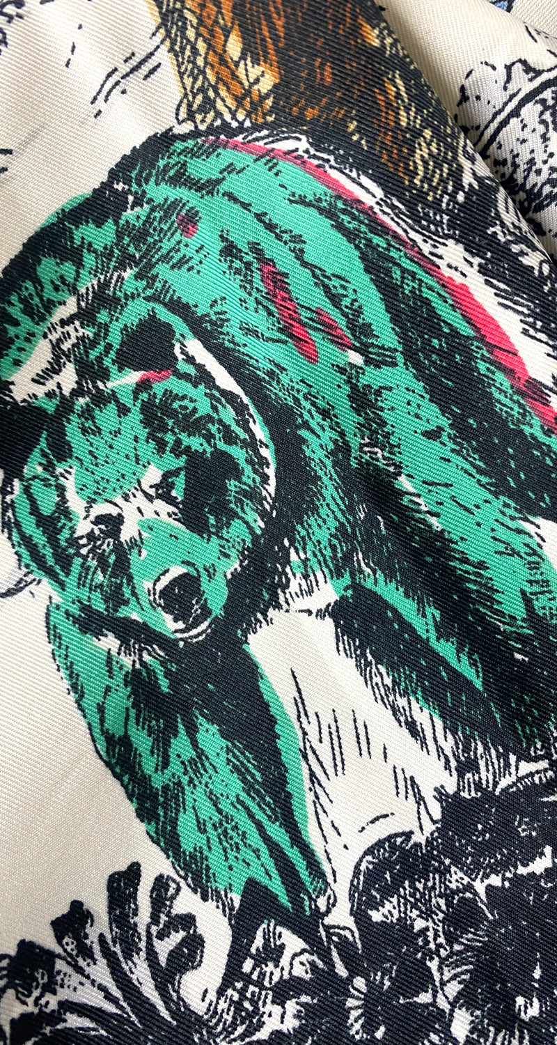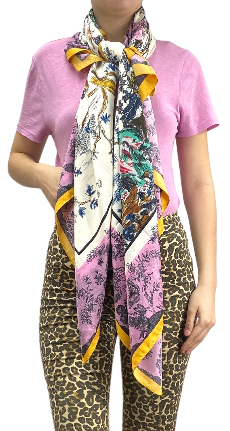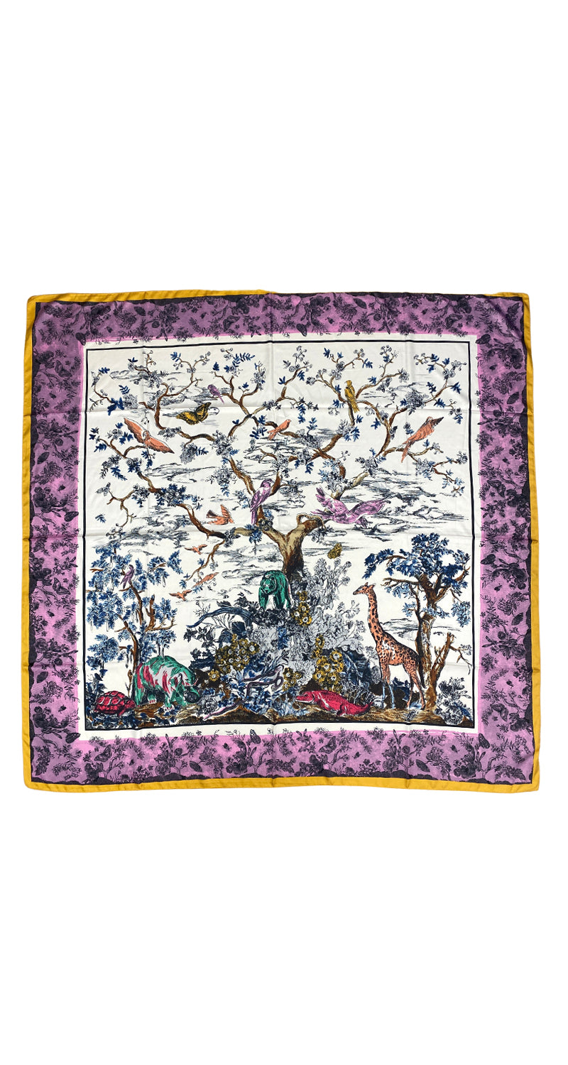 Pañuelo Multicolor de seda con estampado de animales. Medidas: 135 cm x 135 cm.