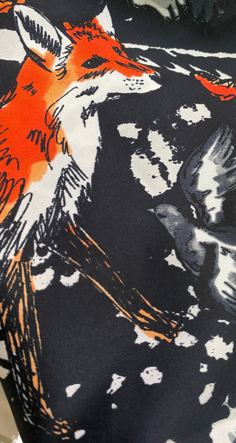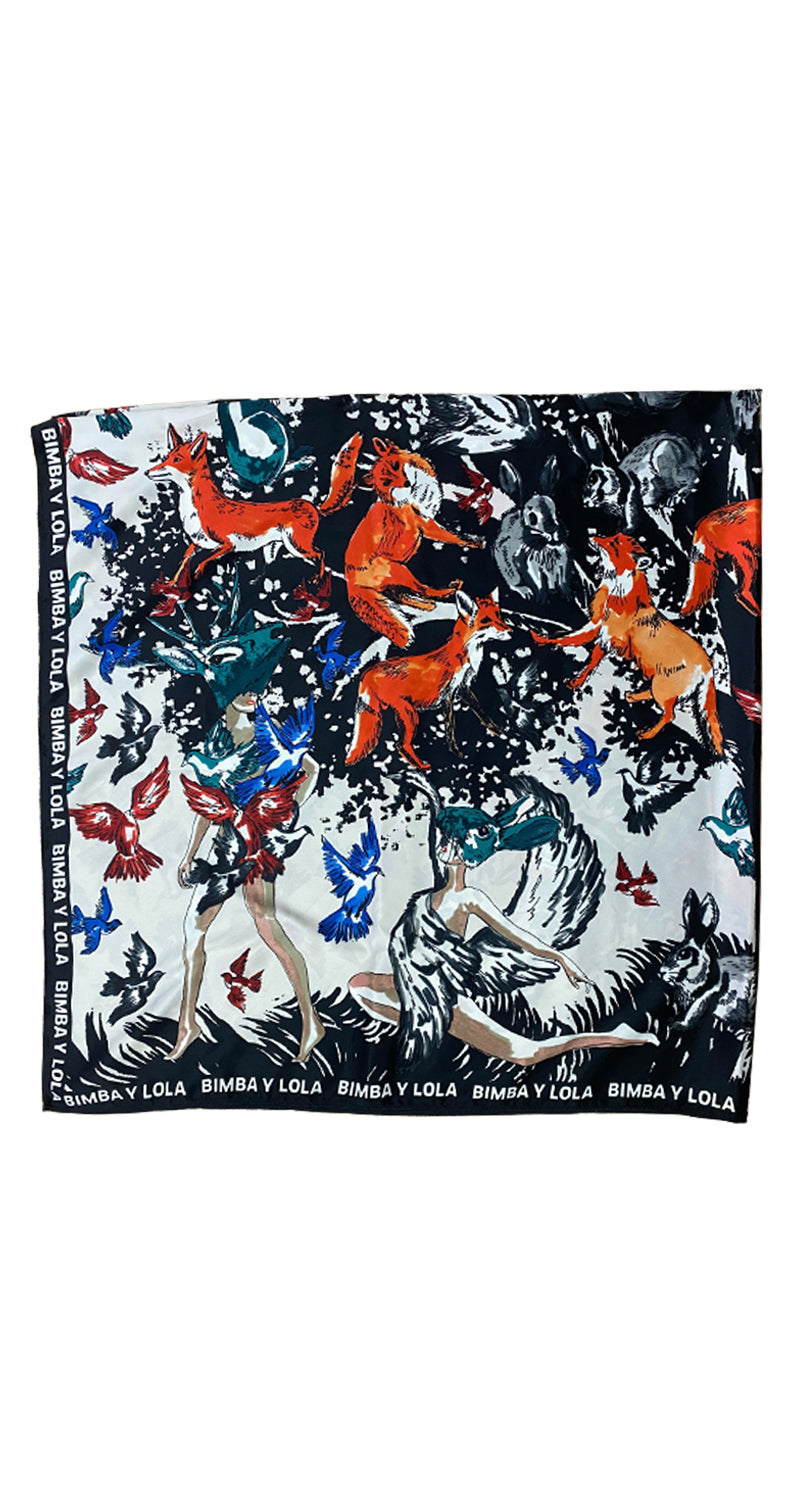 Pañuelo Negro y Beige con estampado Multicolor. Medidas: 120 x120 cm