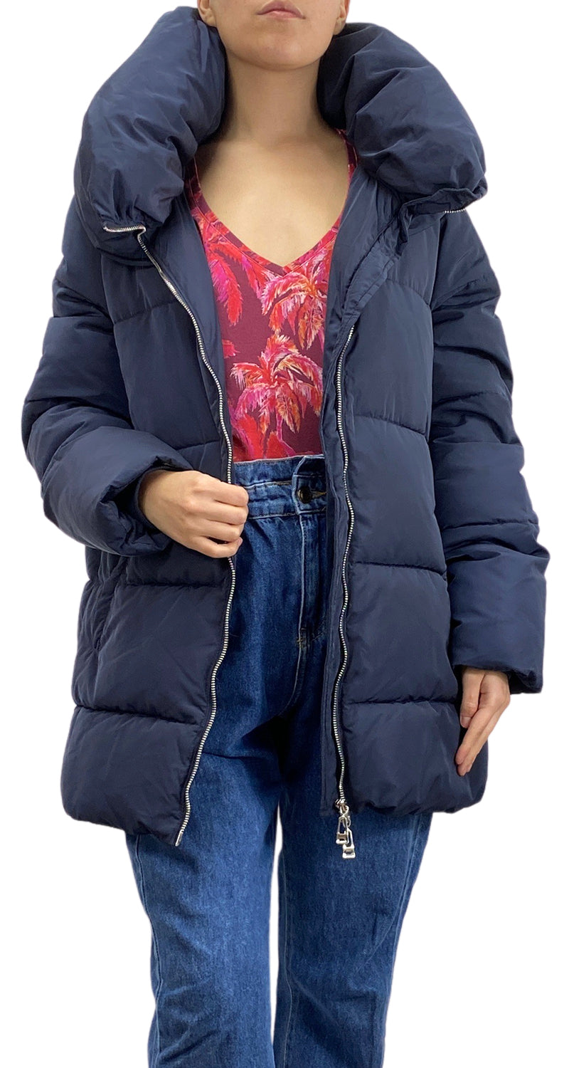 Parca color Azul con diseño de cuello alto y cierre metalizado.